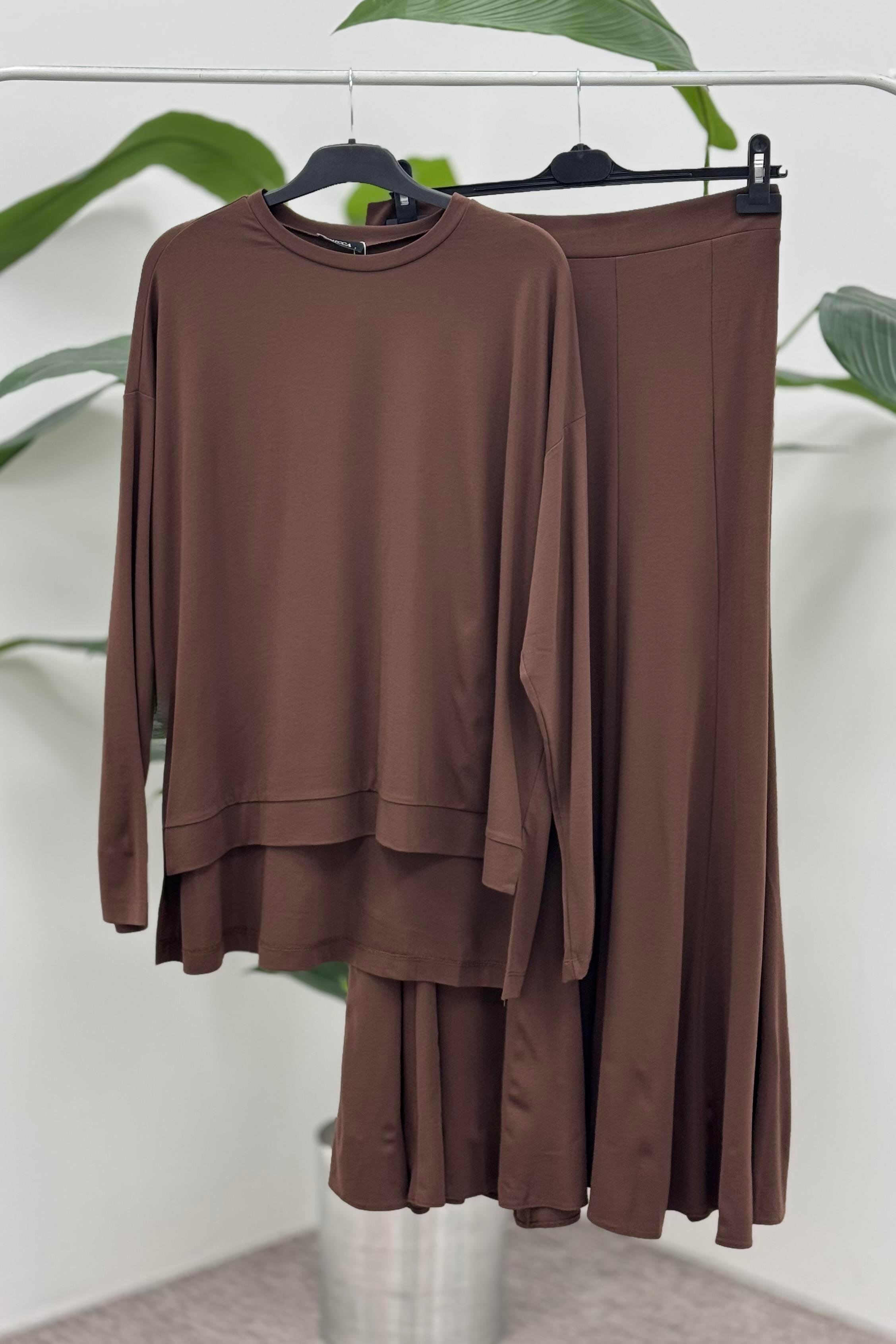 Micca 252849M Tuniği Gömlek Detay Etekli Takım - Kahve