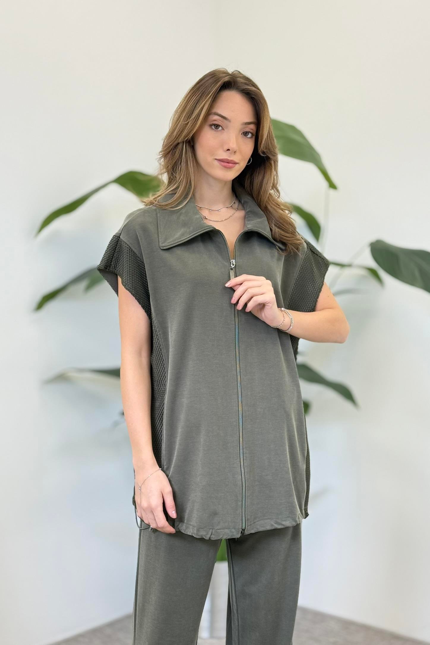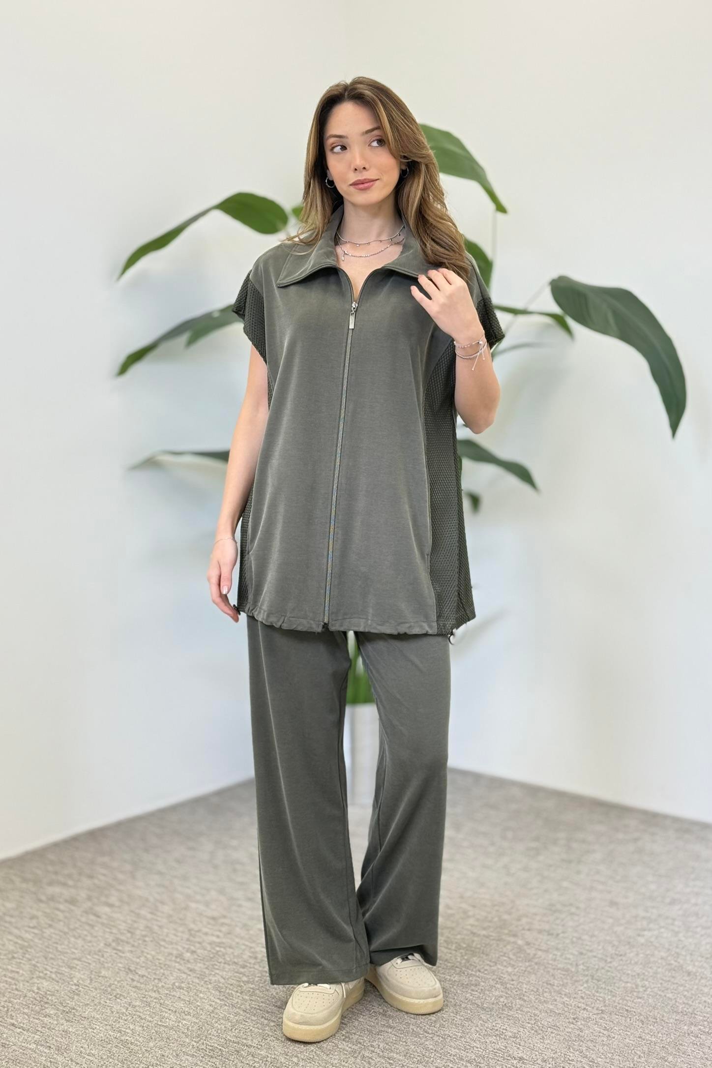 Micca 252855M Yanları Fileli Yelekli Pantolonlu Takım - Haki