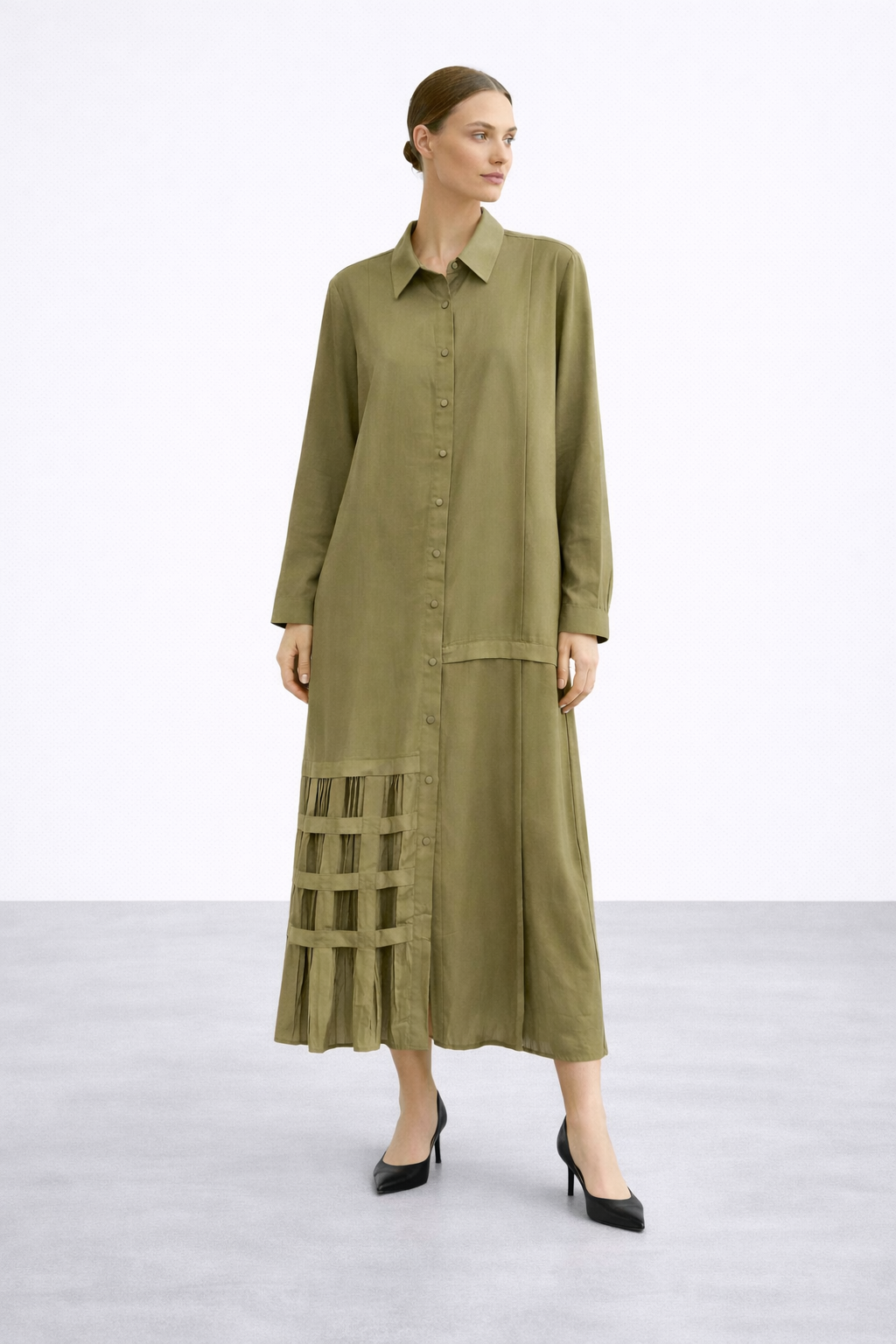 Micca 261521M Etek Ucu Kafes Detay Ferace - Haki (478103108)