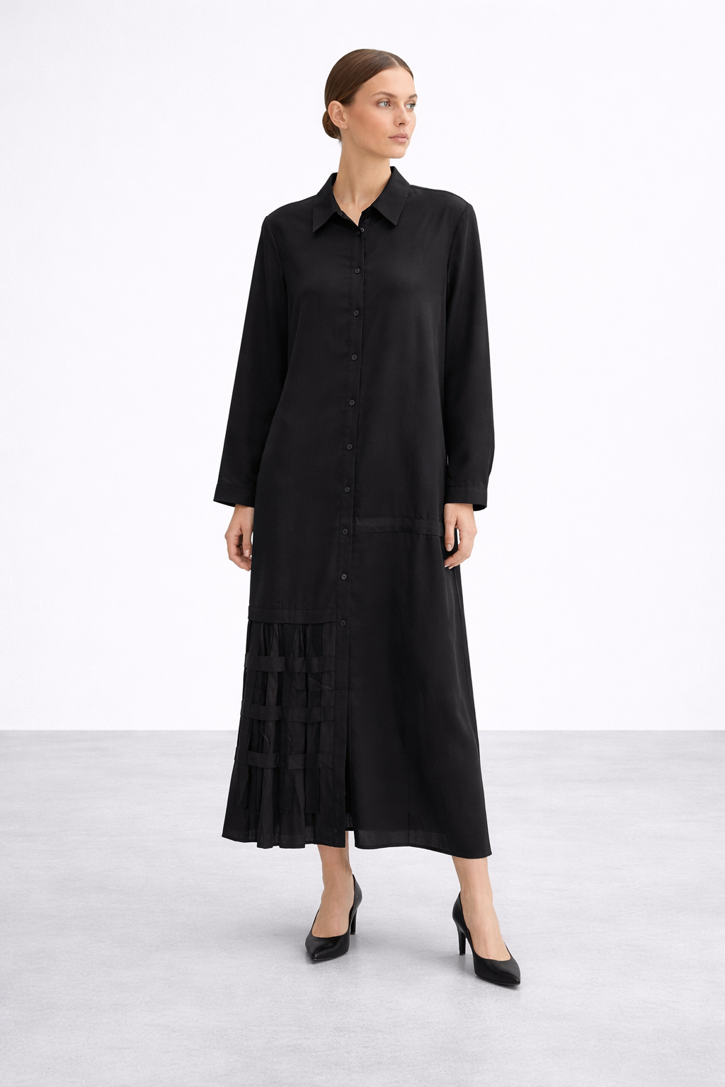 Micca 261521M Etek Ucu Kafes Detay Ferace - Siyah