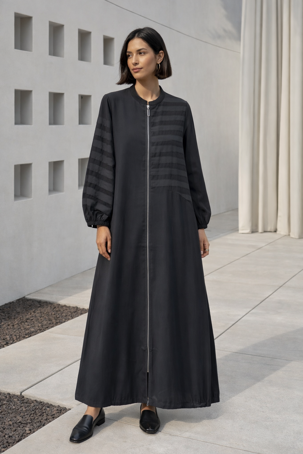 Micca 261579M Bir Yanı Şerit Çizgili Ferace - Siyah