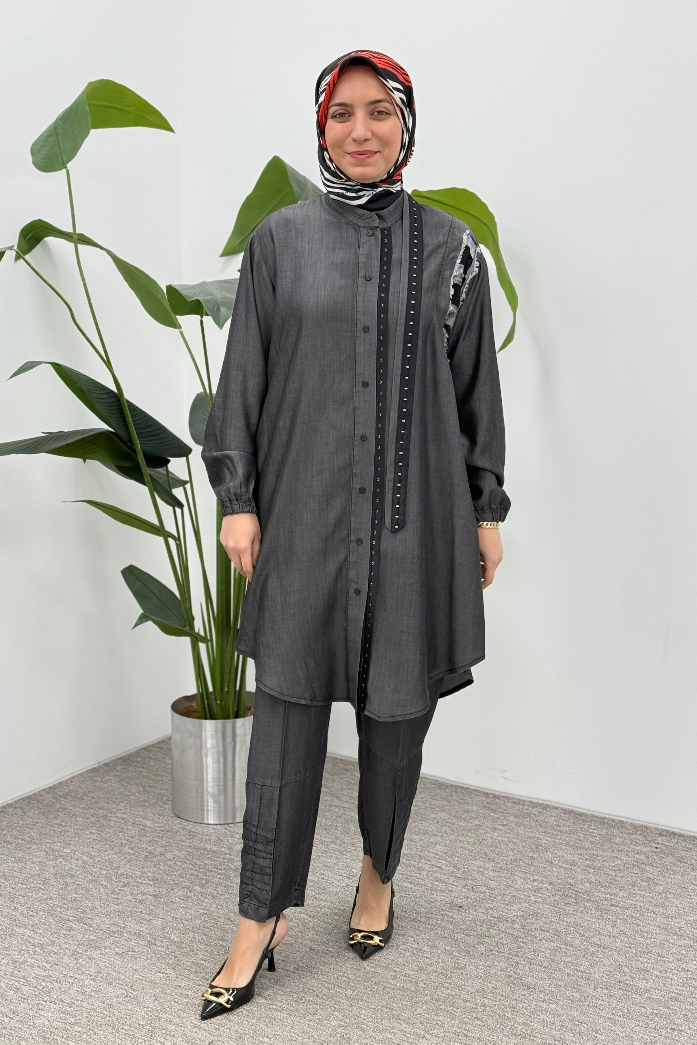 MİSSWHENCE Misswhence 37307 Kot Gömlek Takım - Siyah Misswhence 37307 Kot Gömlek Takım - Bilen Giyim Takım