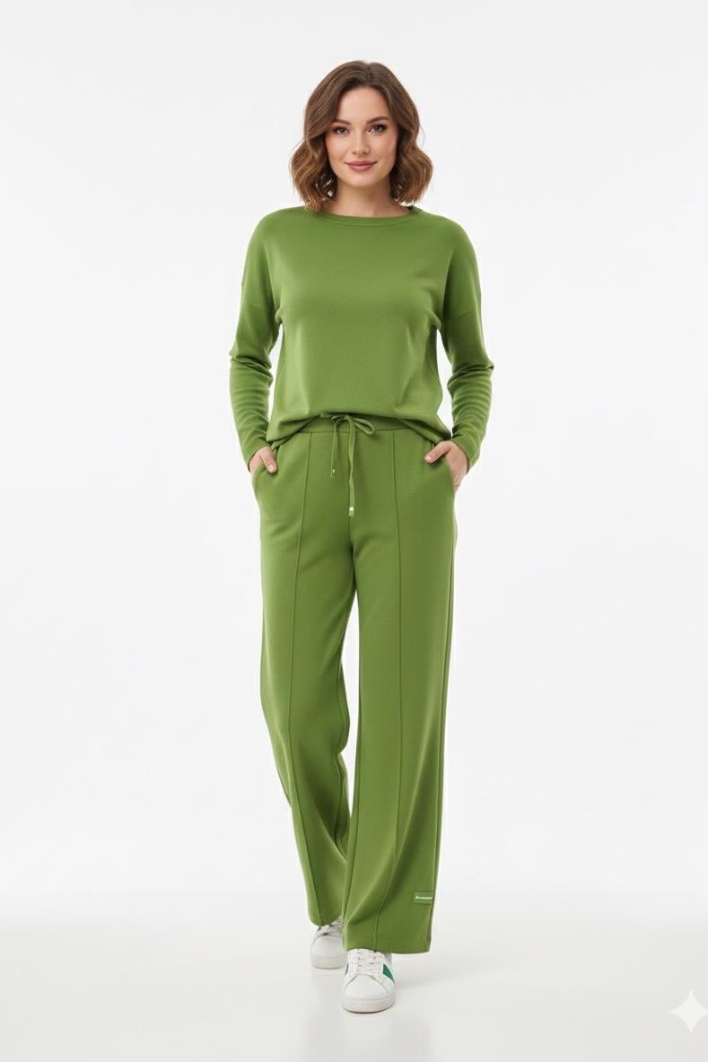 Nervürlü Ve Etiketli Geniş Paça Pantolon 0032528 - Nefrit (361132901)