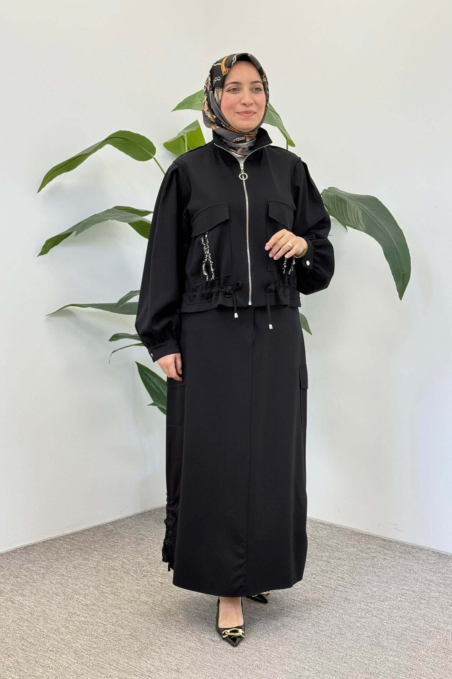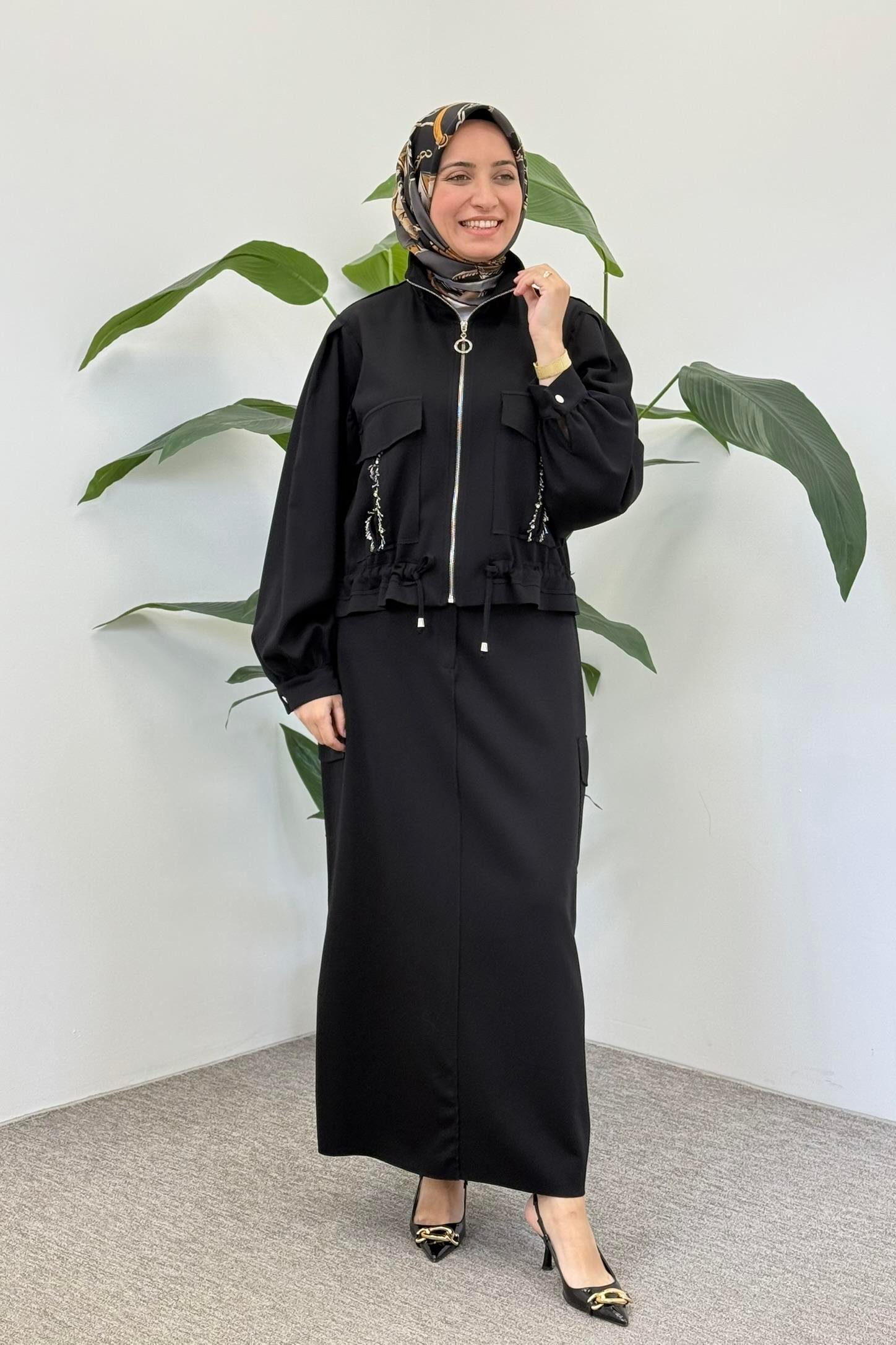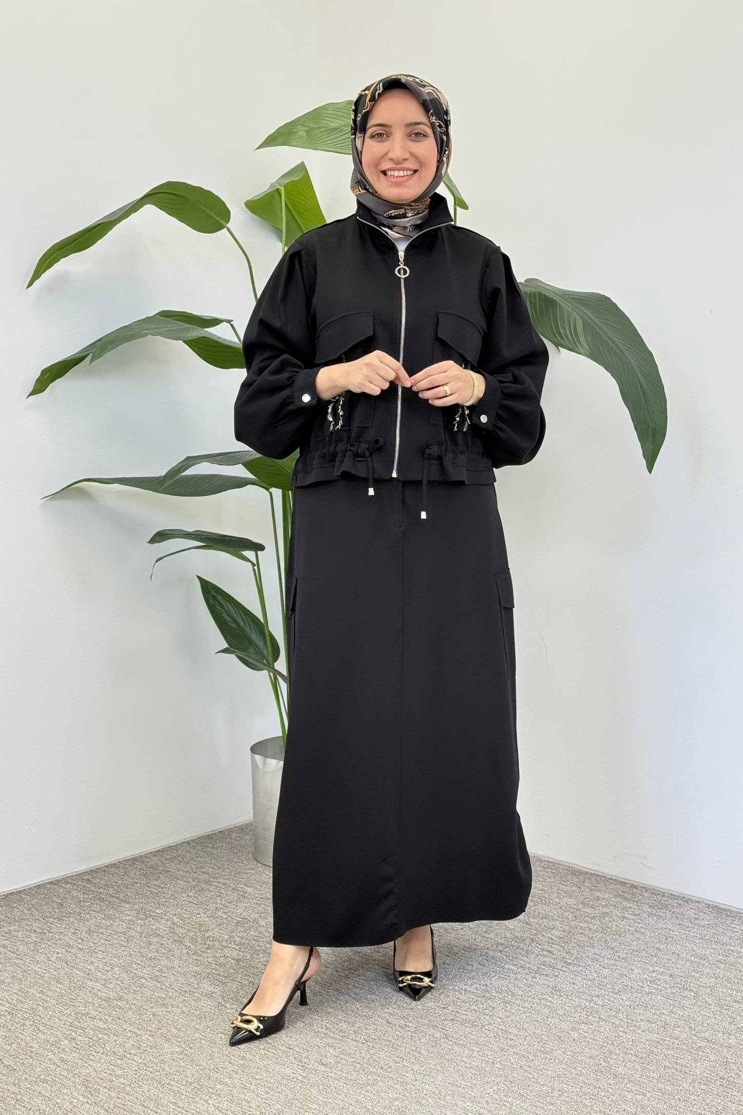 NPrive F14217 Cep Detay Örme Etekli Takım - Siyah
