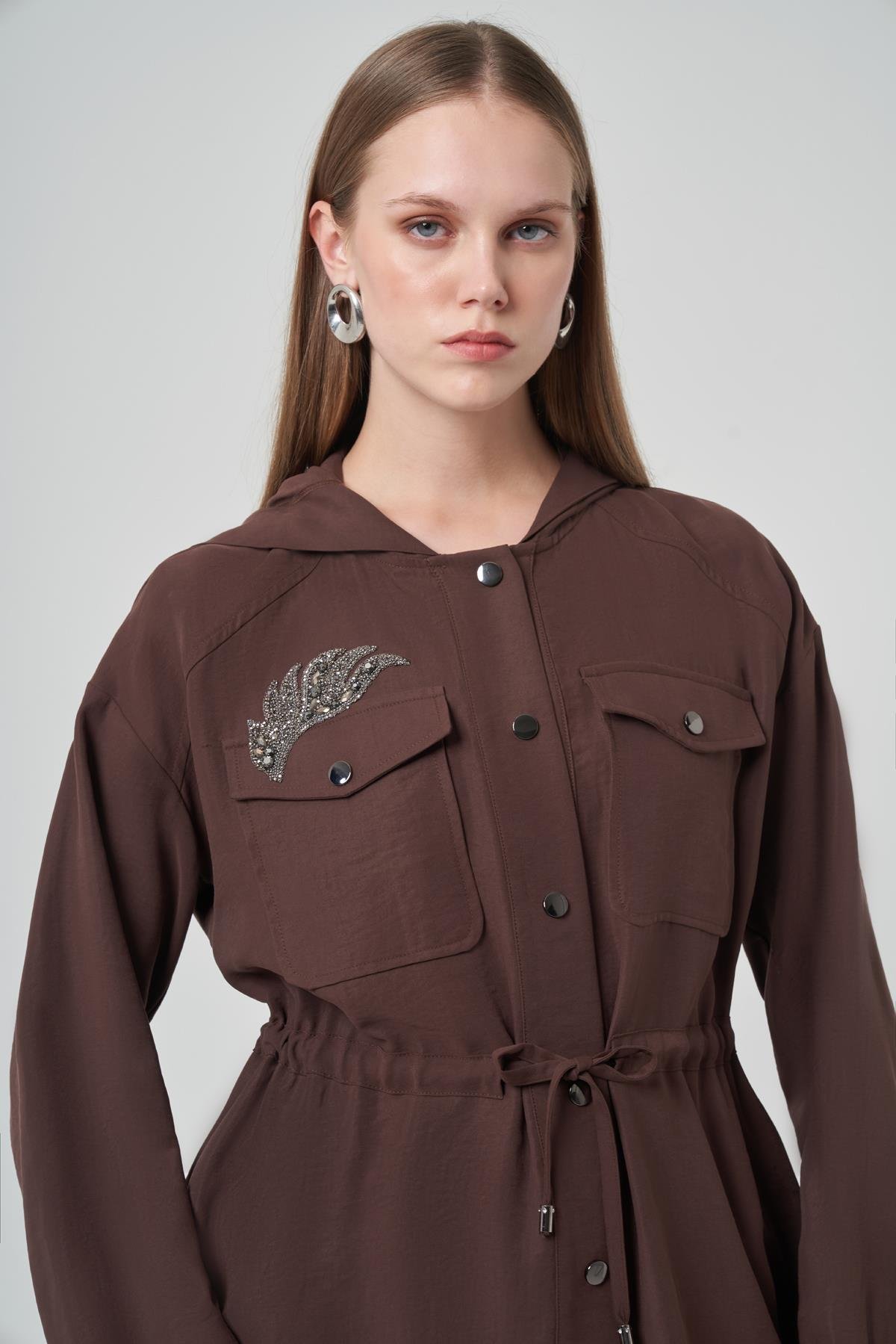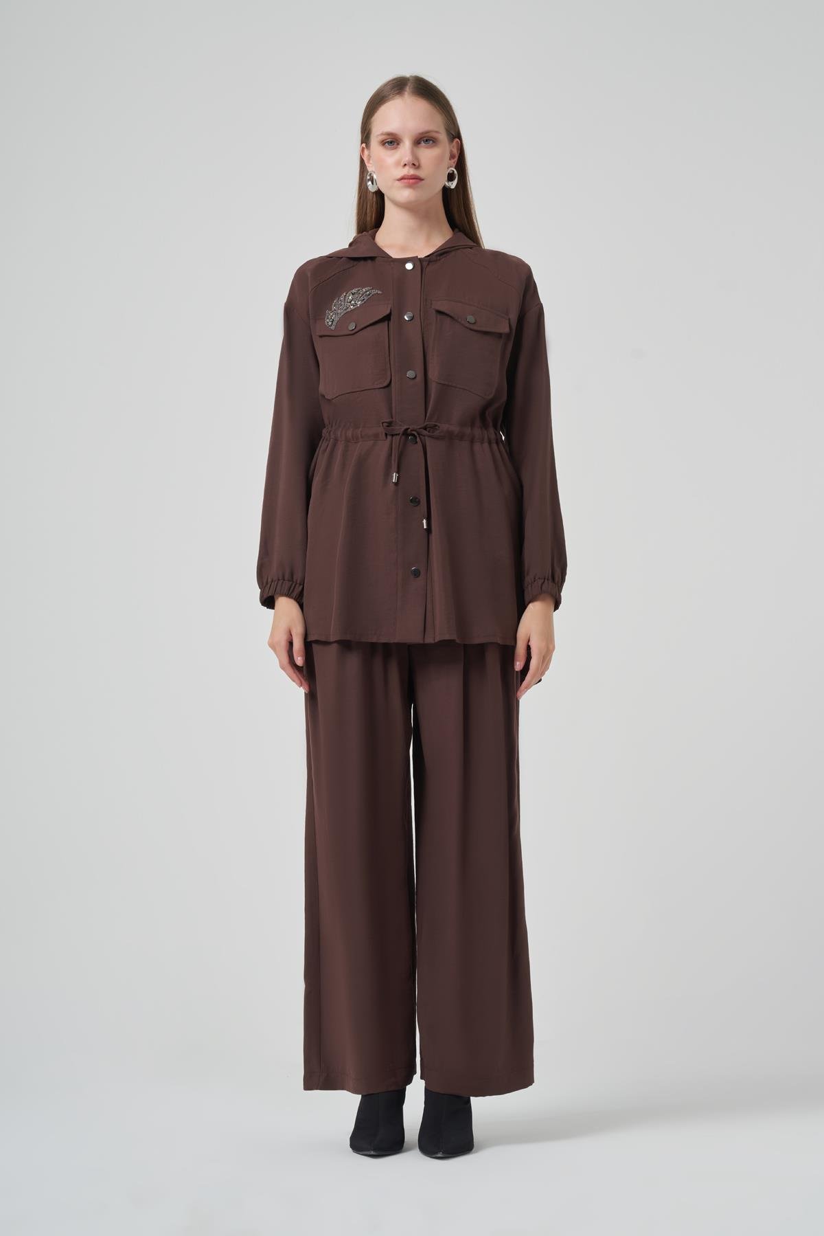 Nuss 1022 Taş İşlemeli Pantolonlu Takım - Bitter