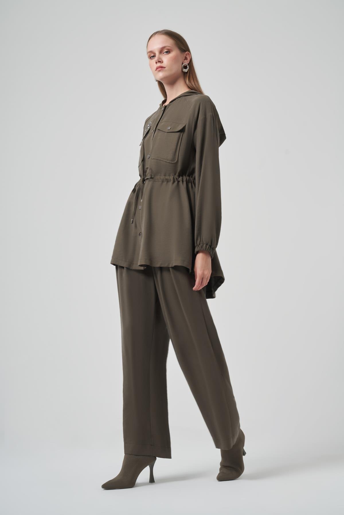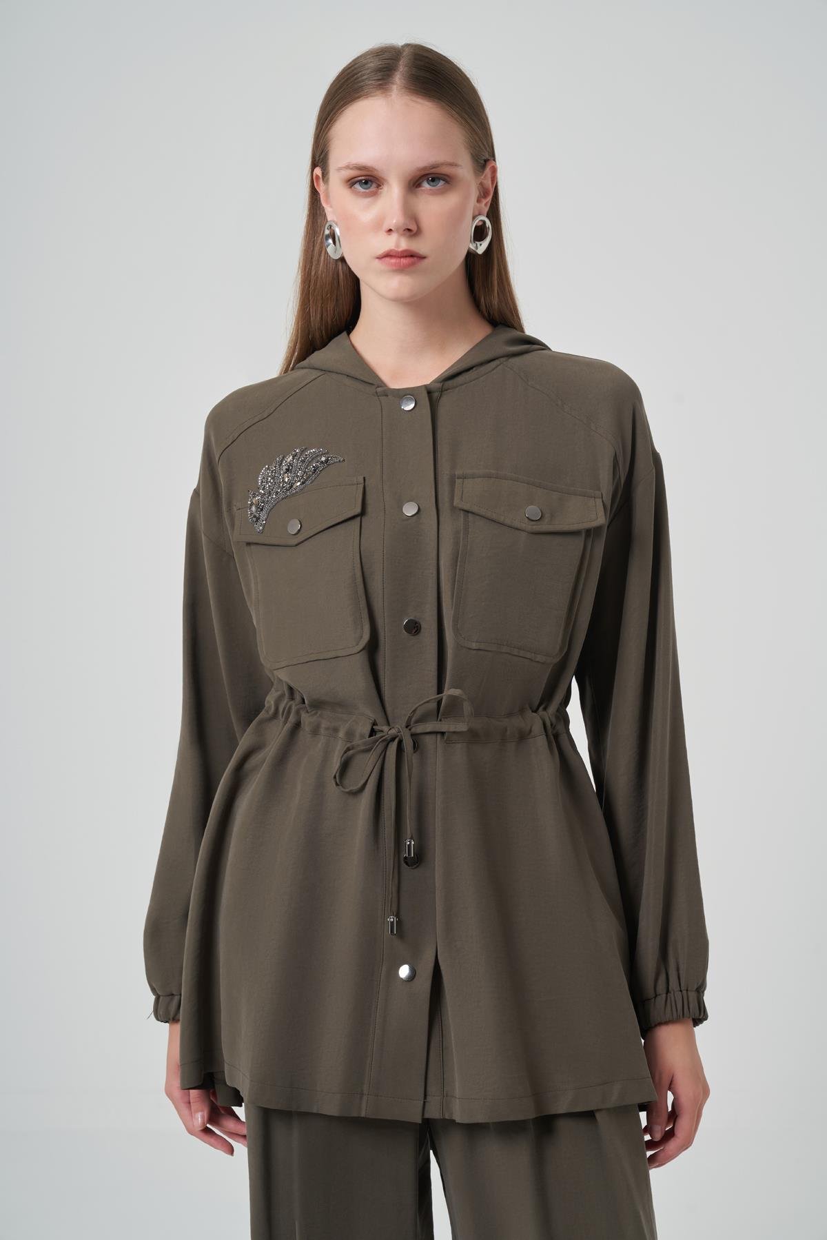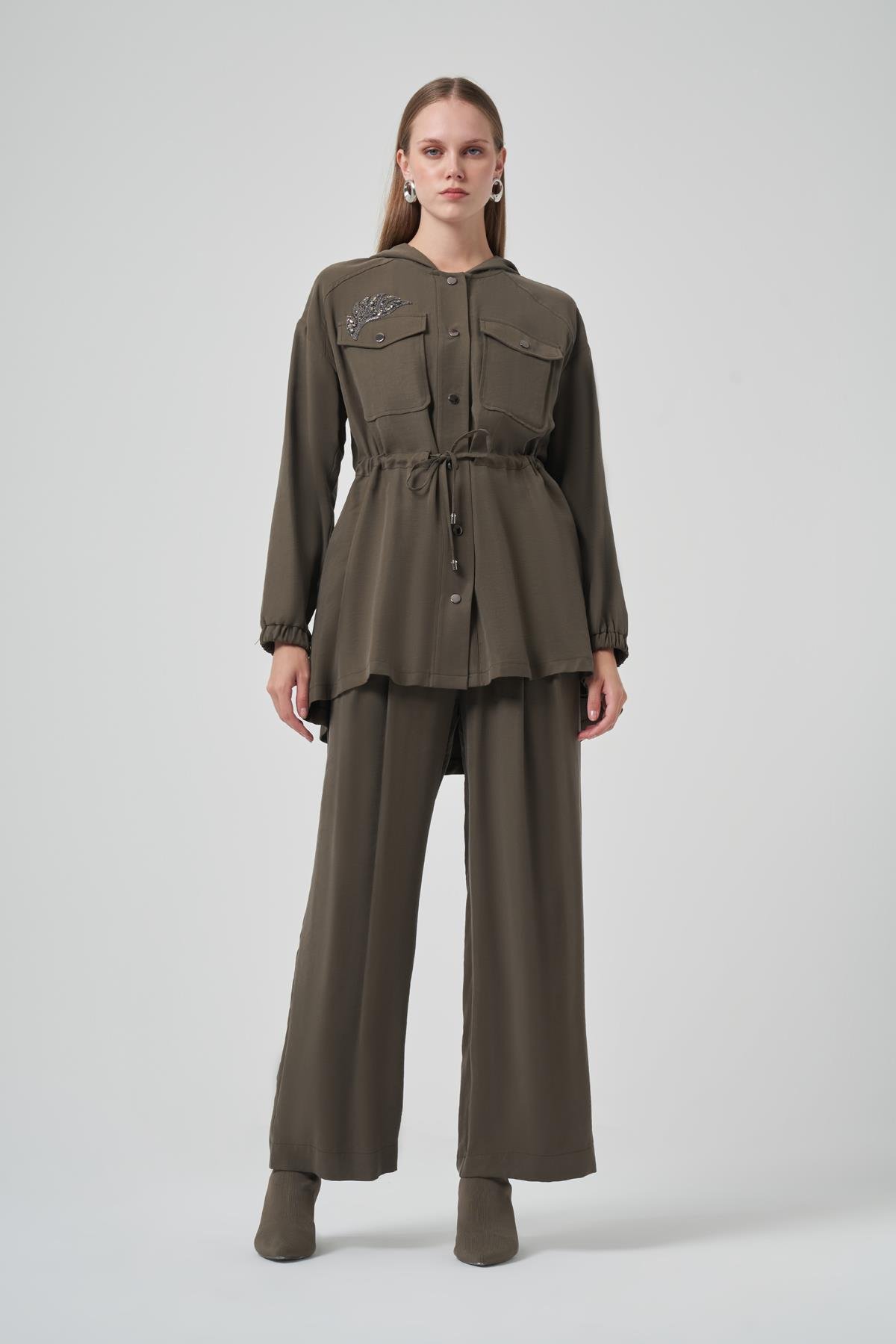 Nuss 1022 Taş İşlemeli Pantolonlu Takım - Haki