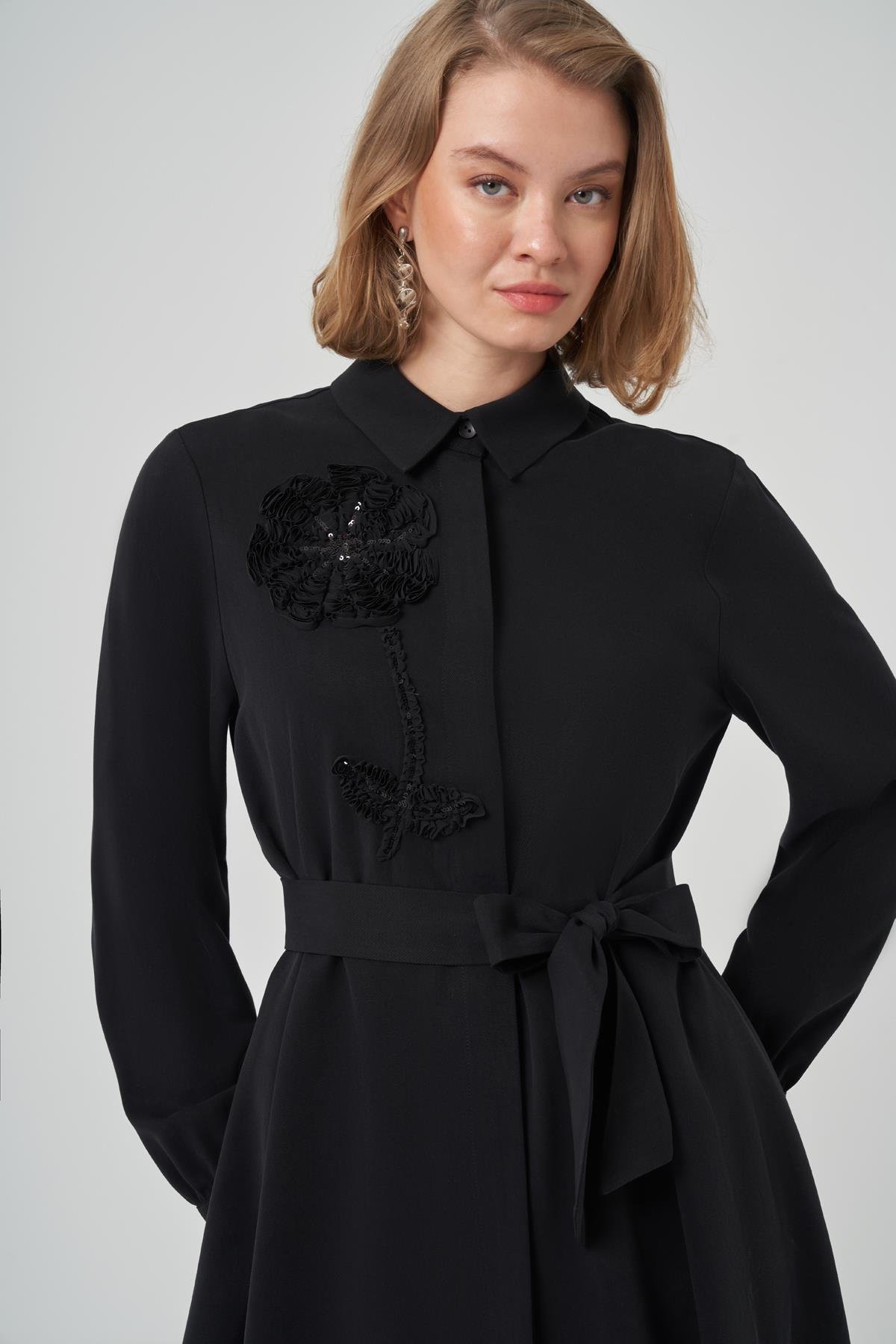 Nuss 1030 Gül Nakış İşlemeli Takım - Siyah (350267910)