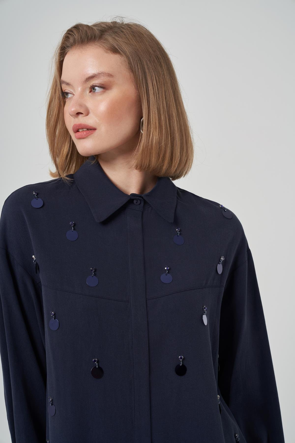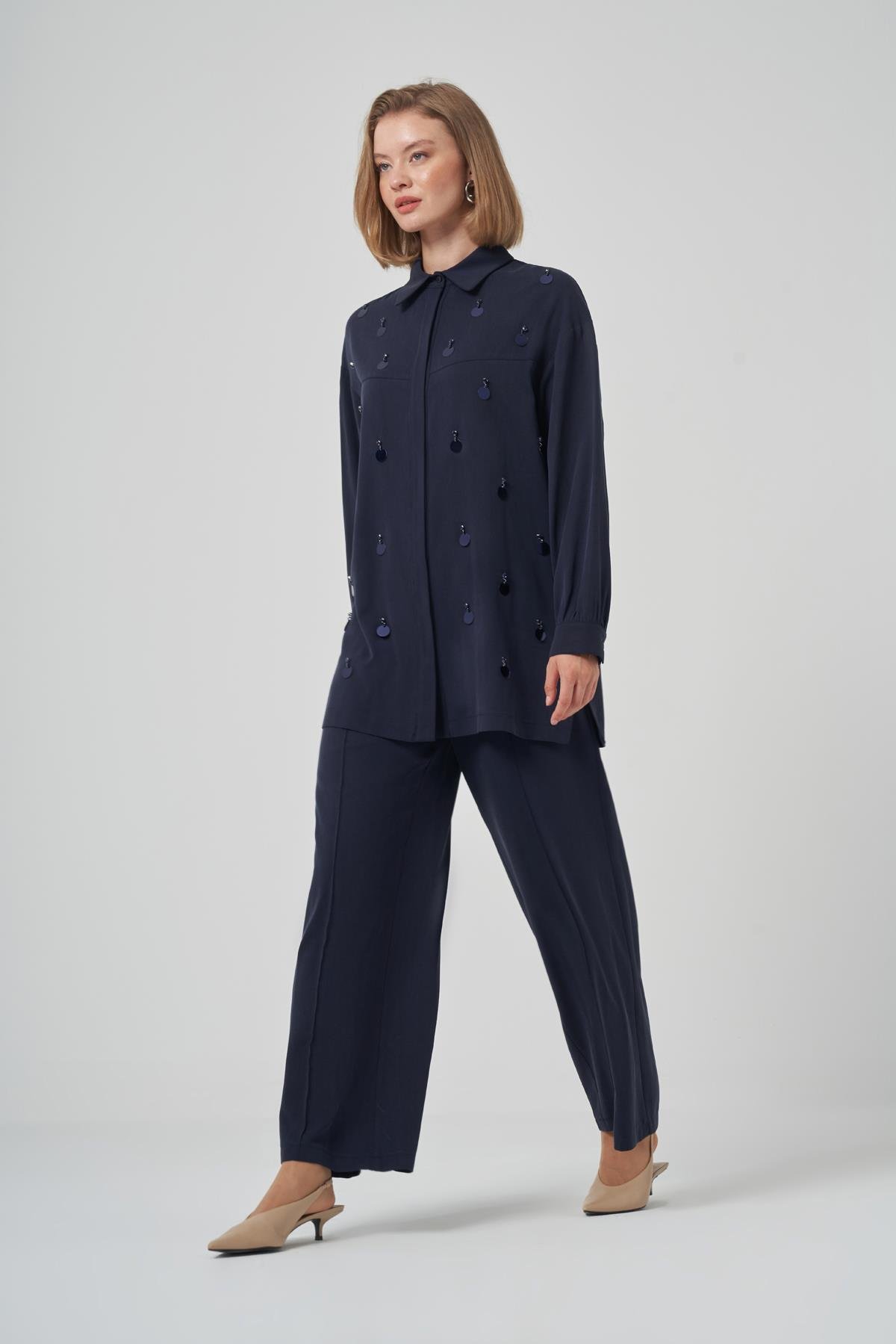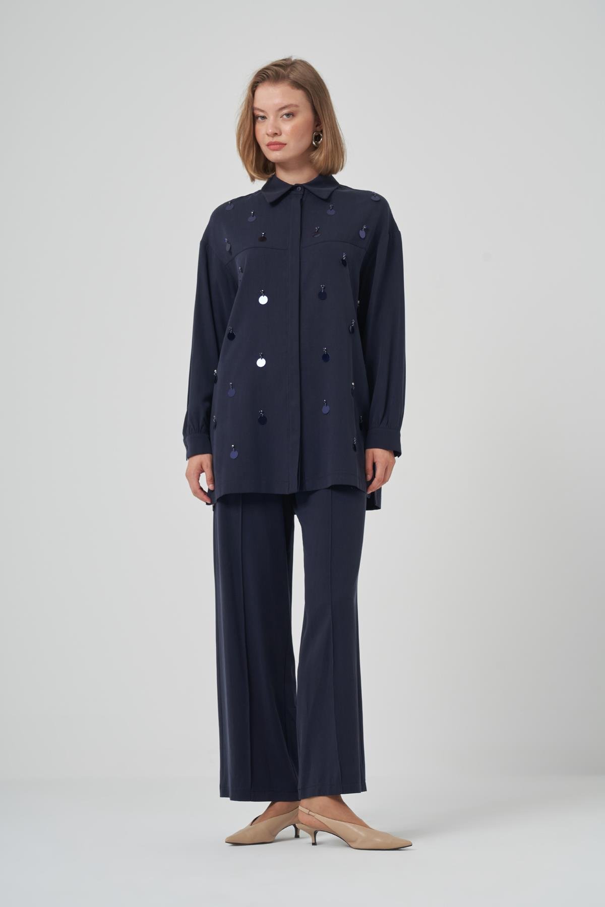 Nuss 1031 Büyük Payet Detaylı Pantolonlu Takım - Lacivert (350267911)