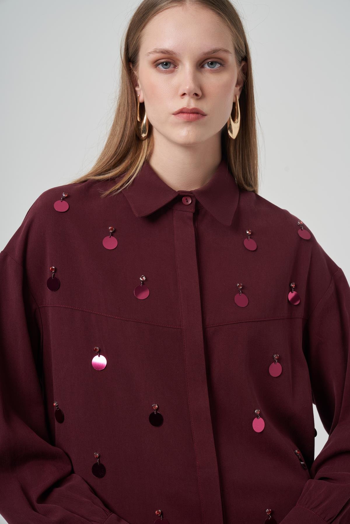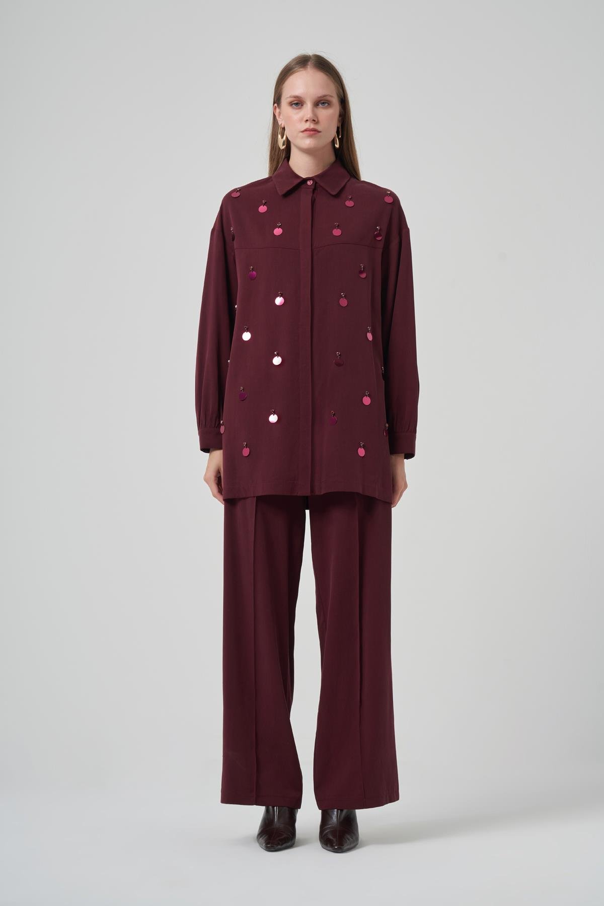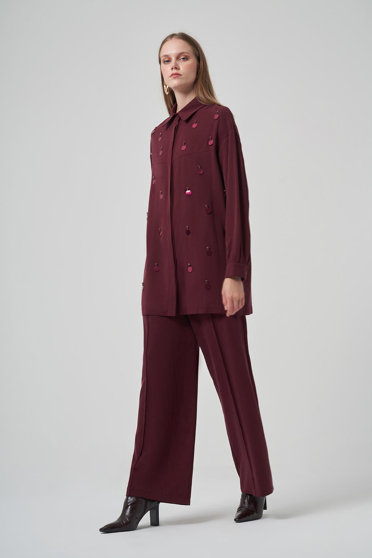 Nuss 1031 Büyük Payet Detaylı Pantolonlu Takım - Mürdüm (350267911)