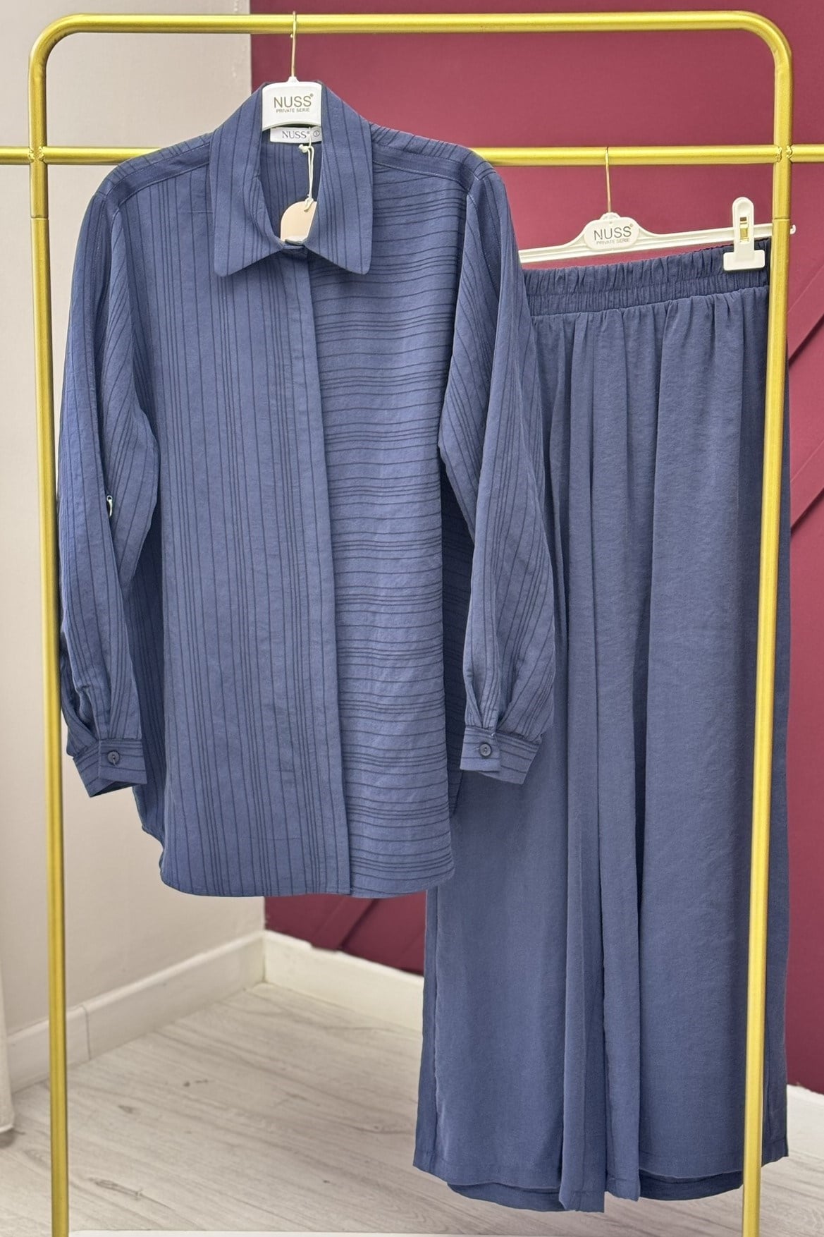 Nuss 1055 Kendinden Çizgili Pantolonlu Takım - Lacivert