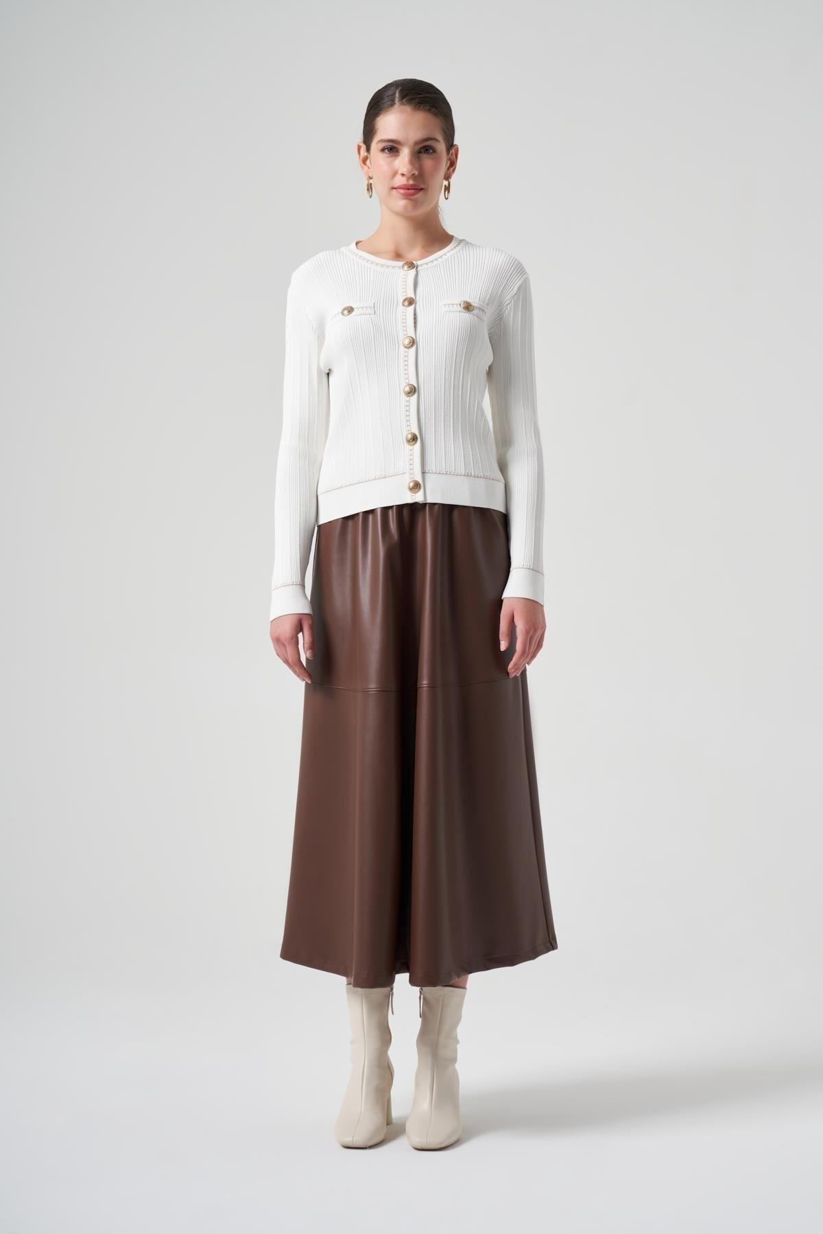 Nuss 1115 Sahte Cep Detaylı Kısa Merserize Hırka - Ekru