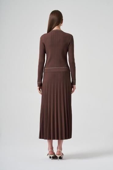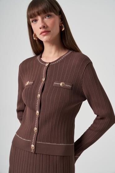 Nuss 1115 Sahte Cep Detaylı Kısa Merserize Hırka - Kahve (357267908)