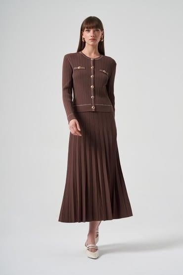Nuss 1115 Sahte Cep Detaylı Kısa Merserize Hırka - Kahve