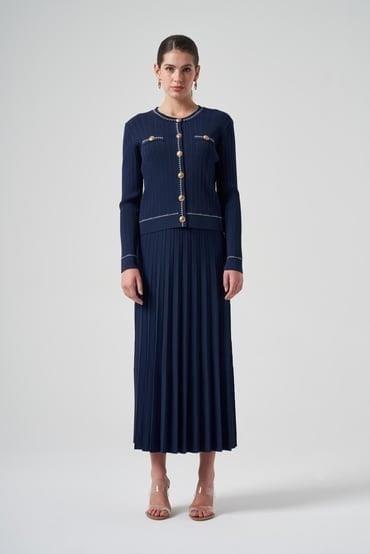 Nuss 1115 Sahte Cep Detaylı Kısa Merserize Hırka - Lacivert