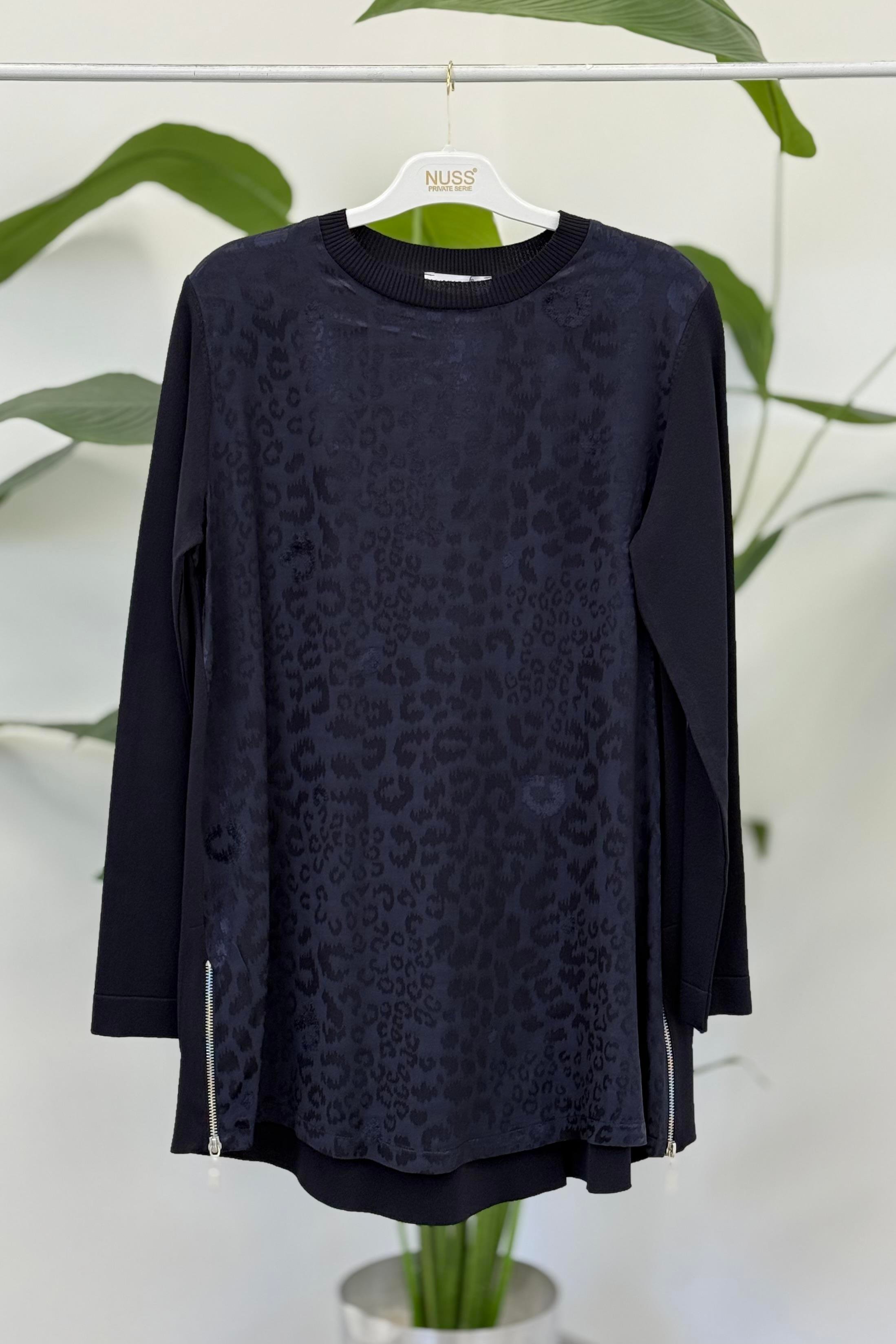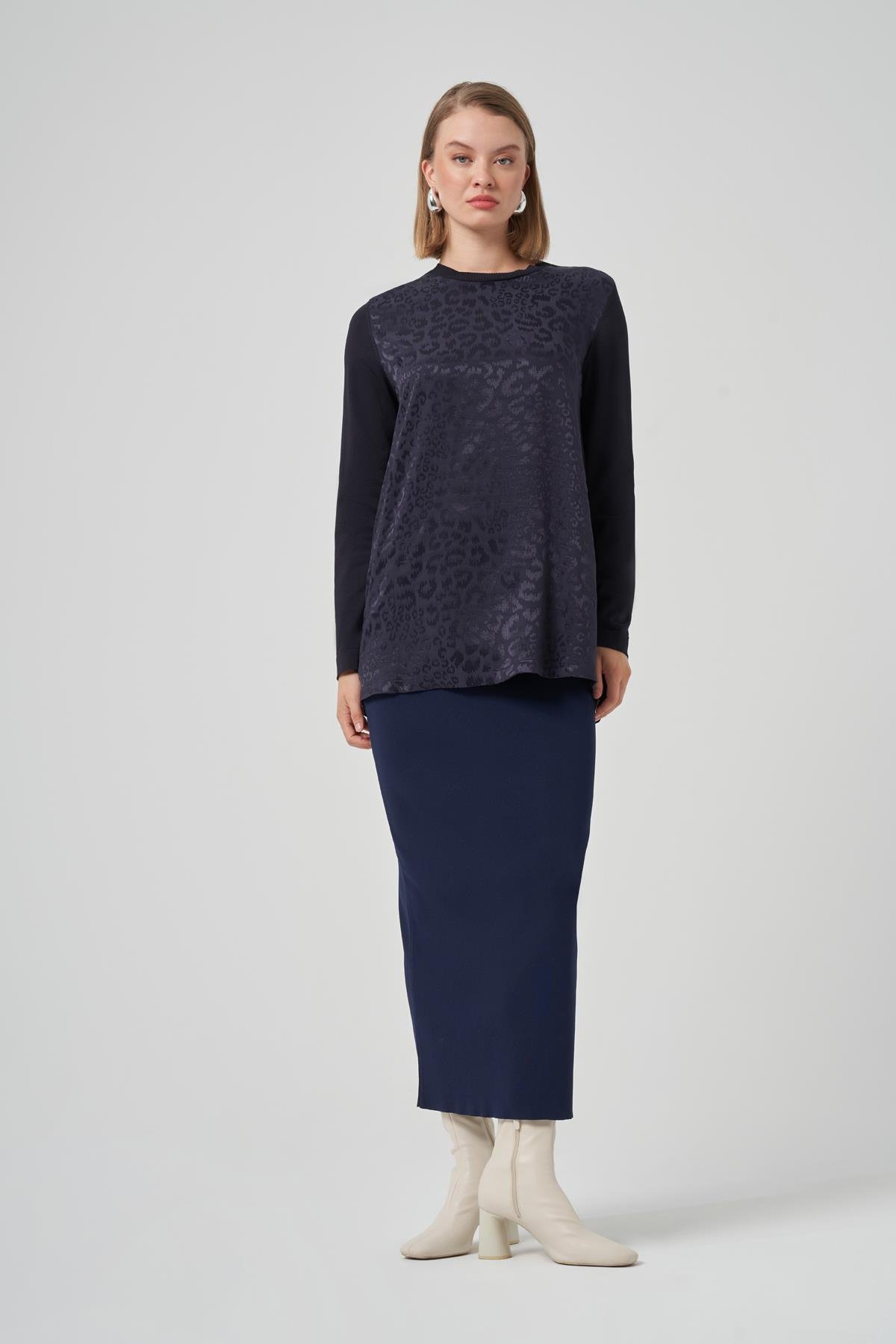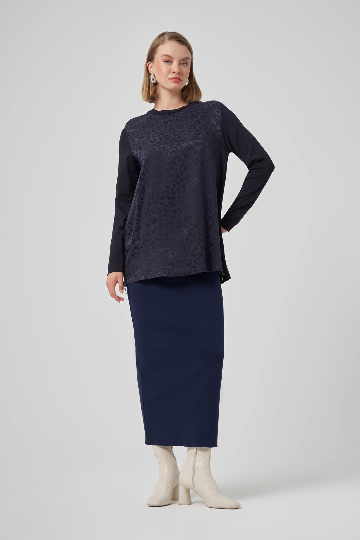 Nuss 3002 Leopar Jakar Detay Merserize Tunik - Lacivert