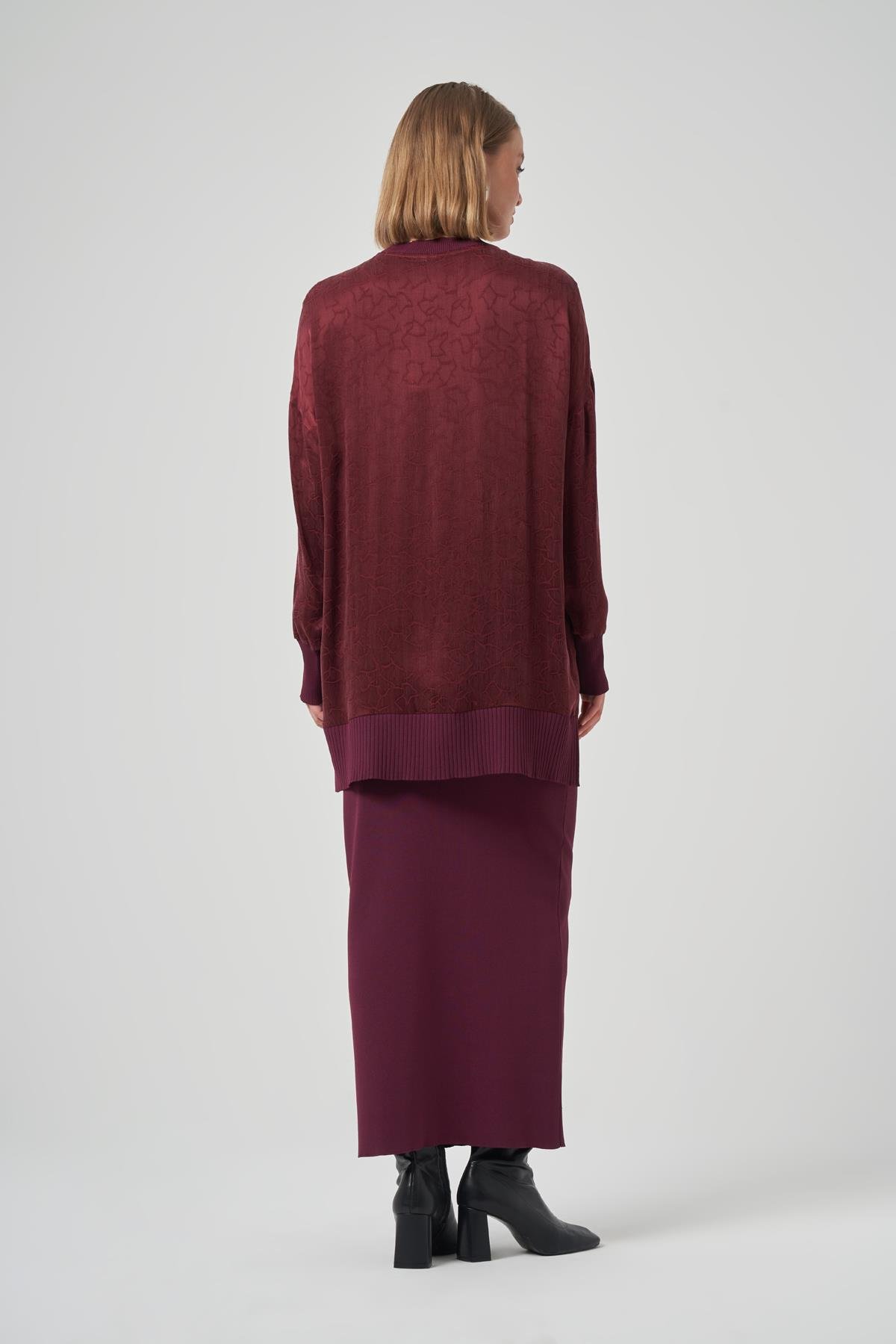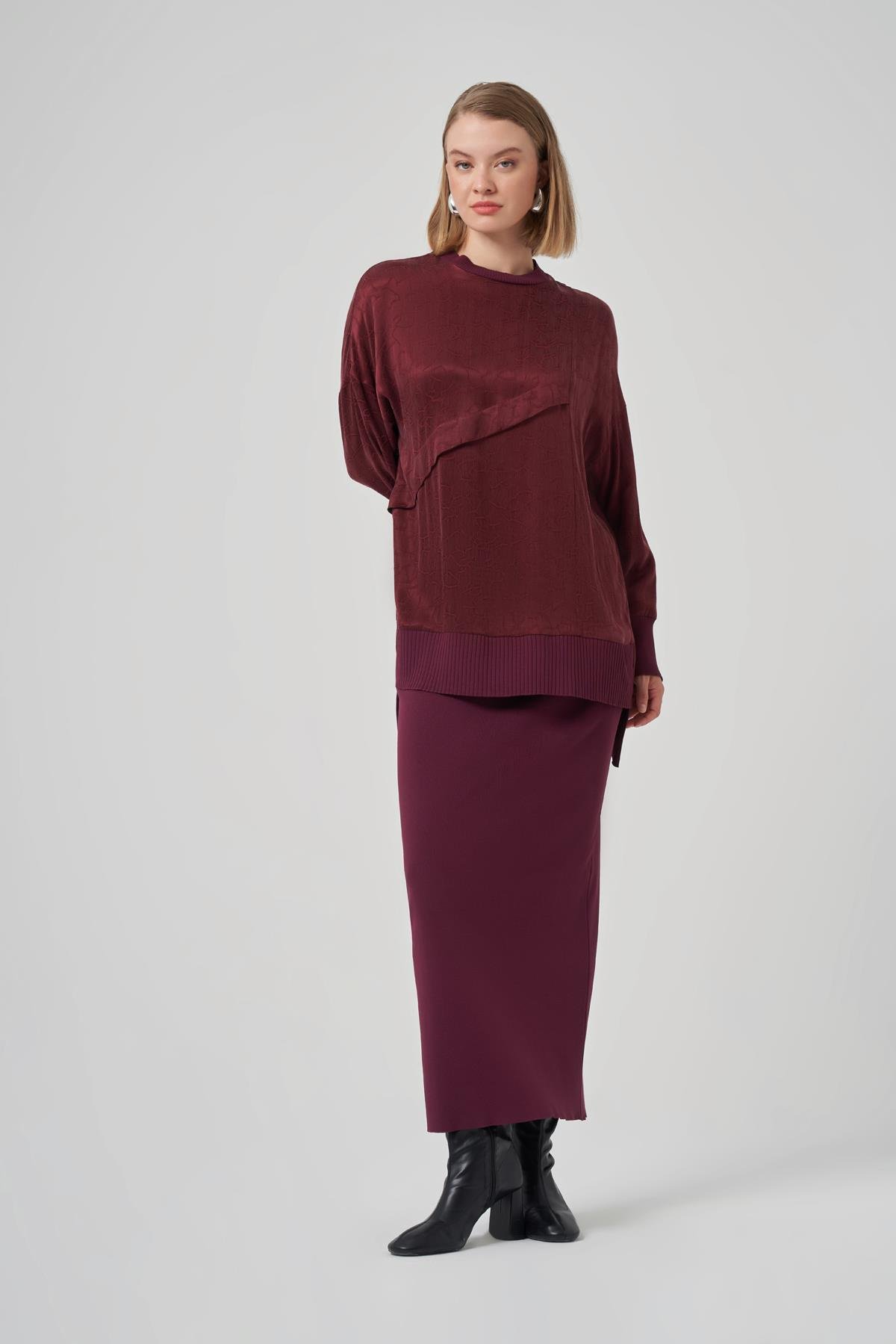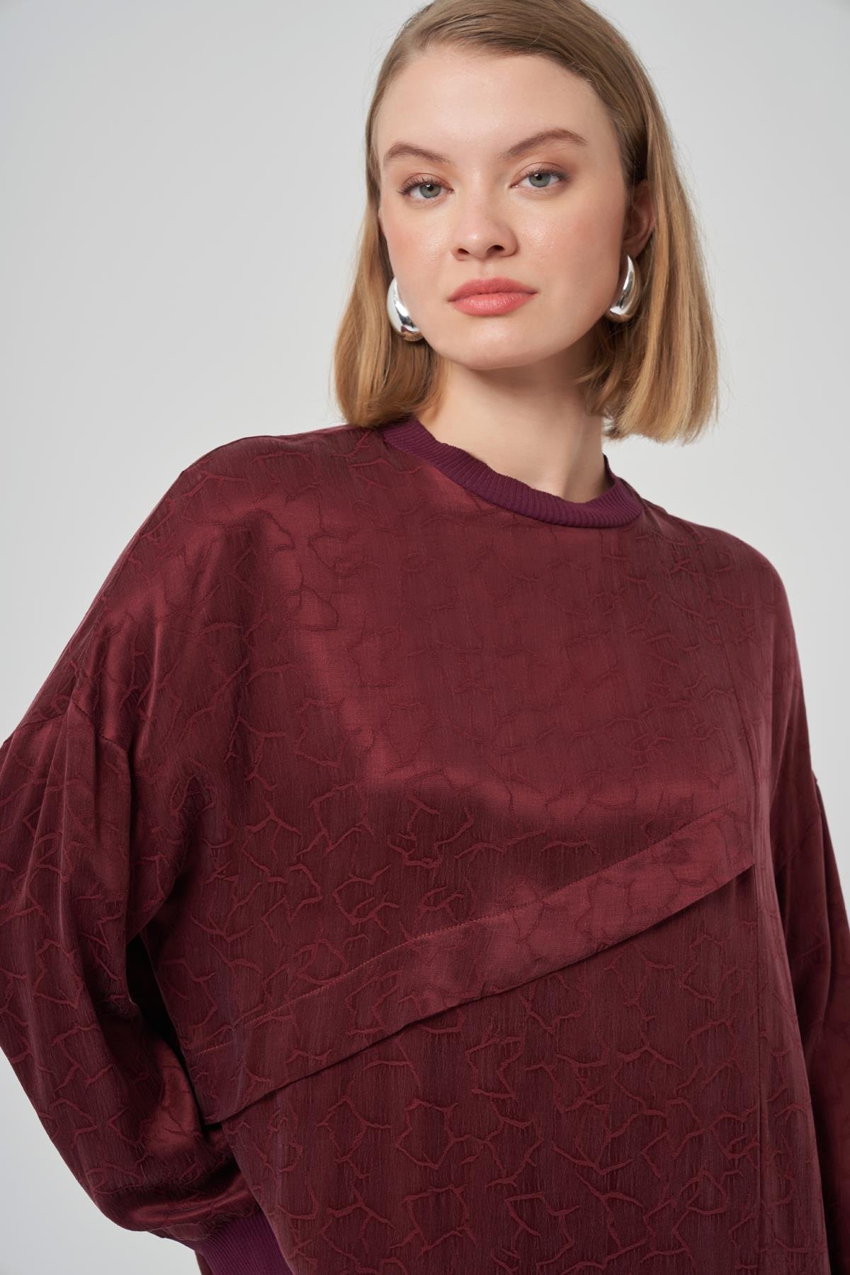 Nuss 3003 Çarpraz Biye Detay Jakarlı Tunik - Bordo (362267903)