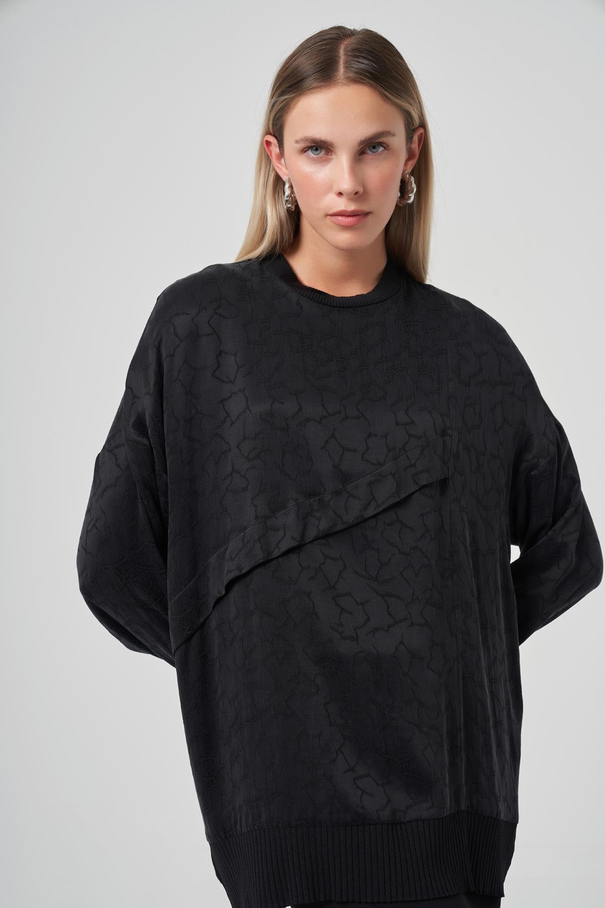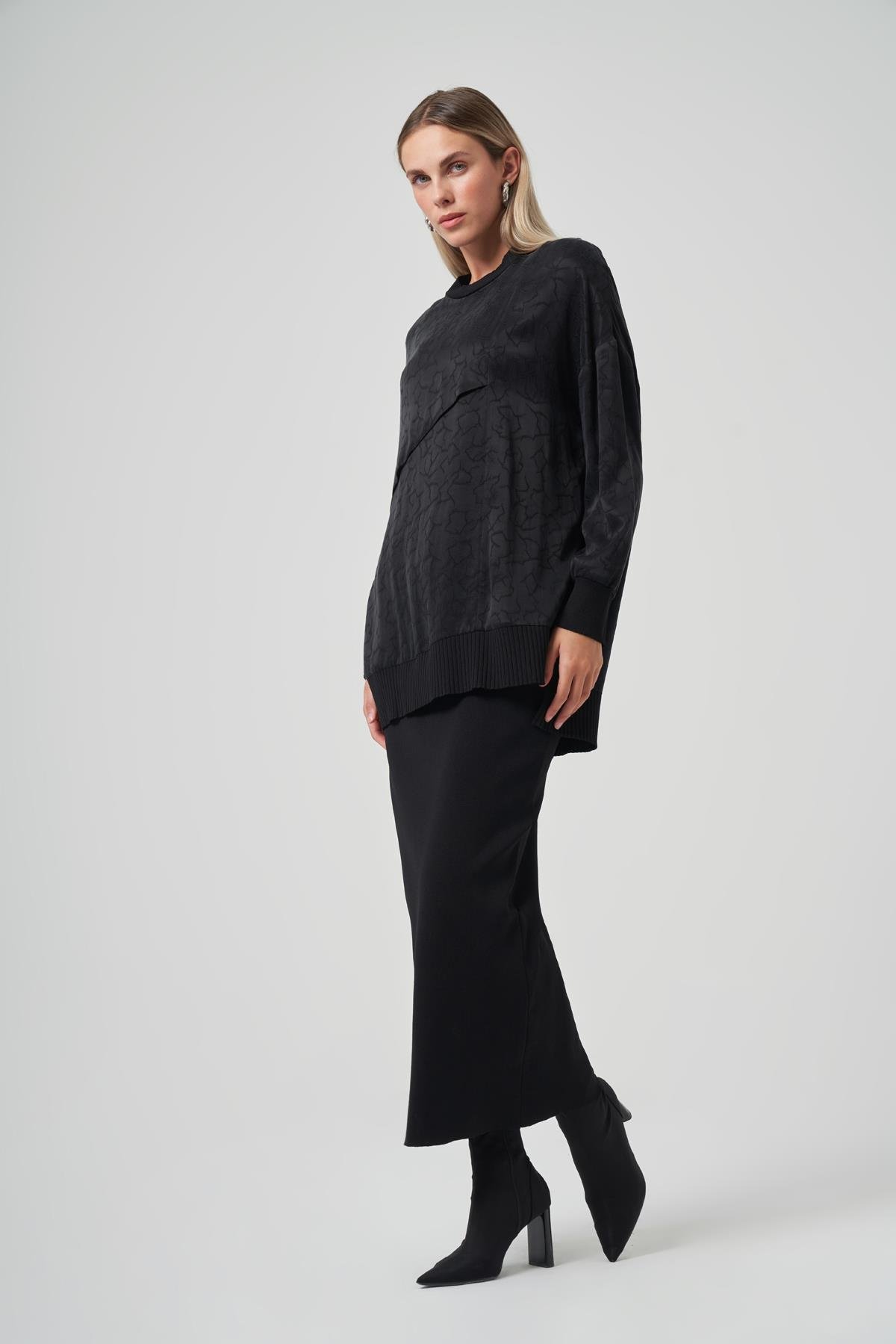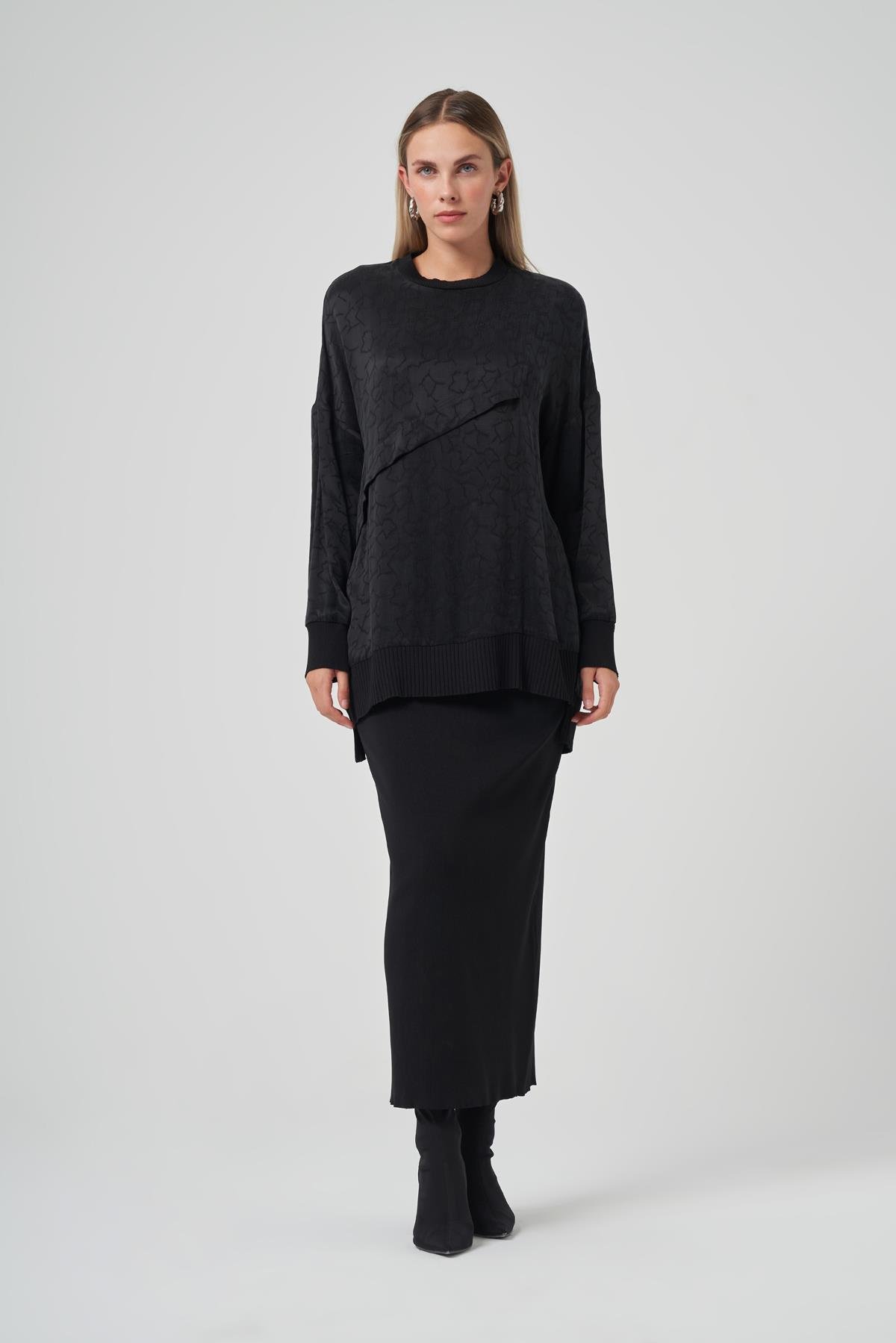 Nuss 3003 Çarpraz Biye Detay Jakarlı Tunik - Siyah