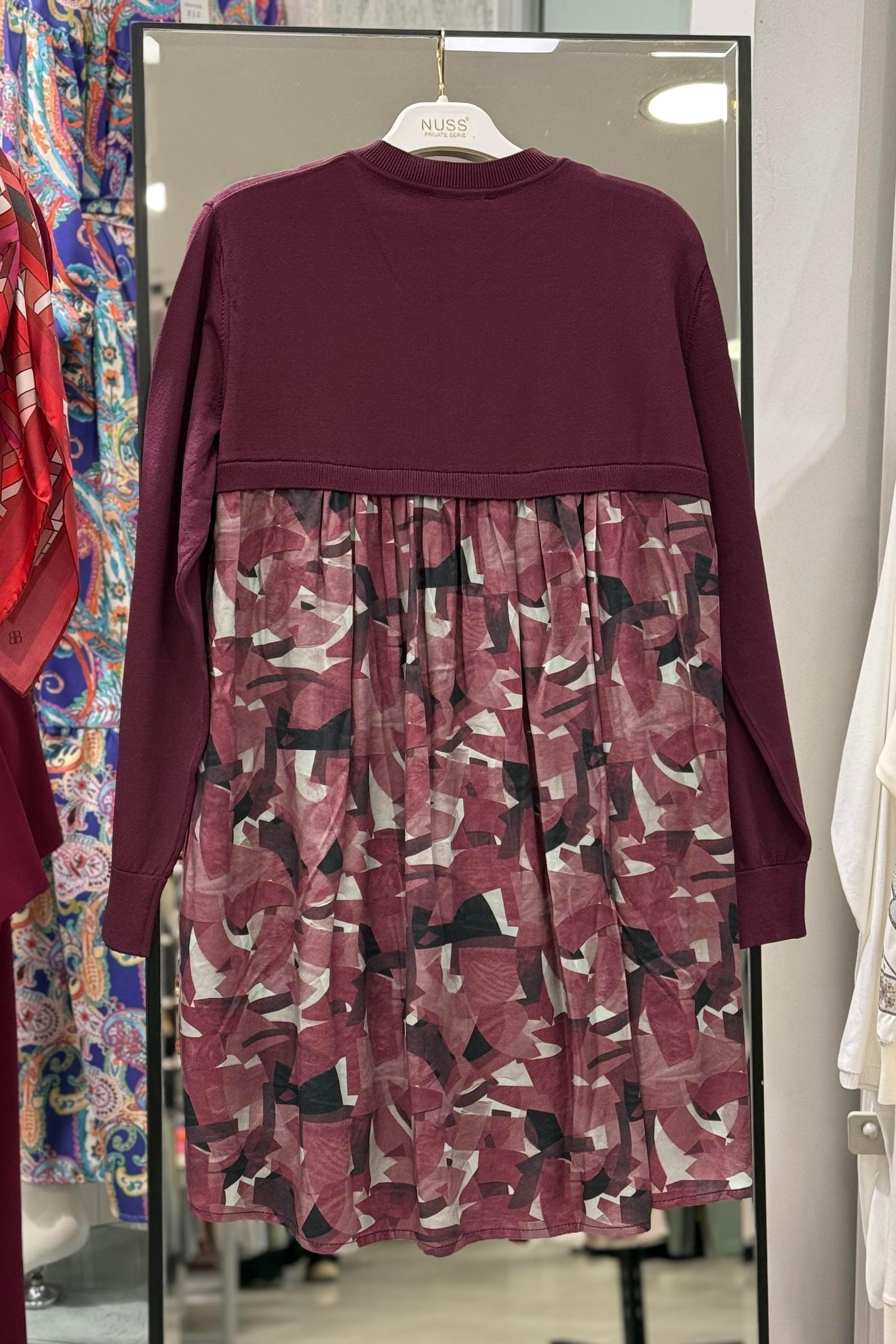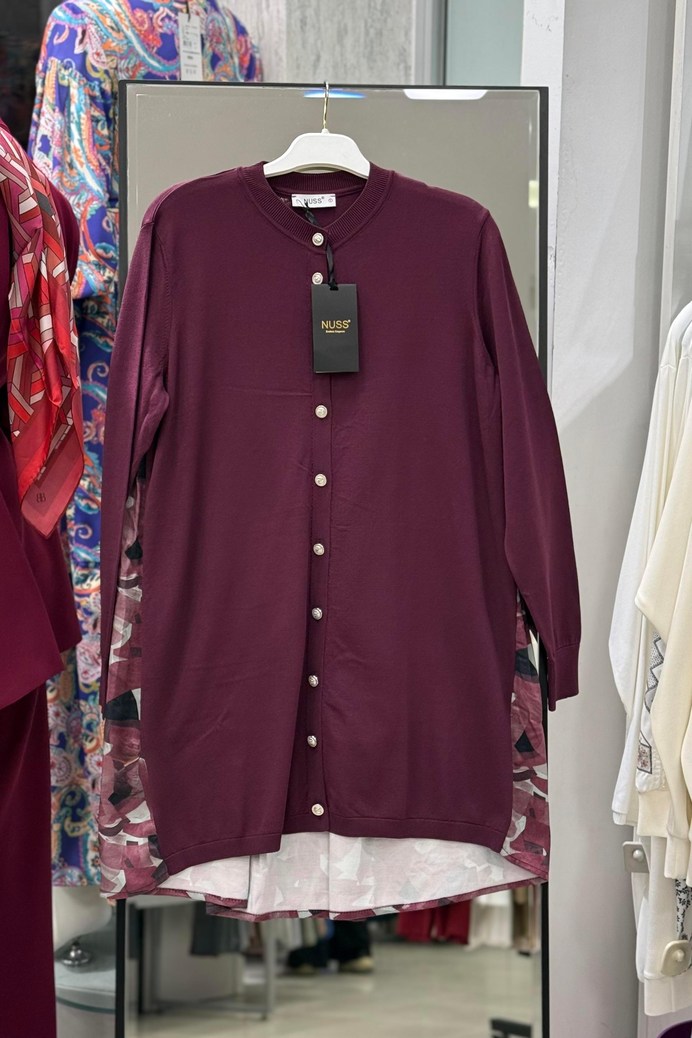 Nuss 3013 Sırt Kısmı Desenli Düğmeli Hırka - Bordo (357267906)