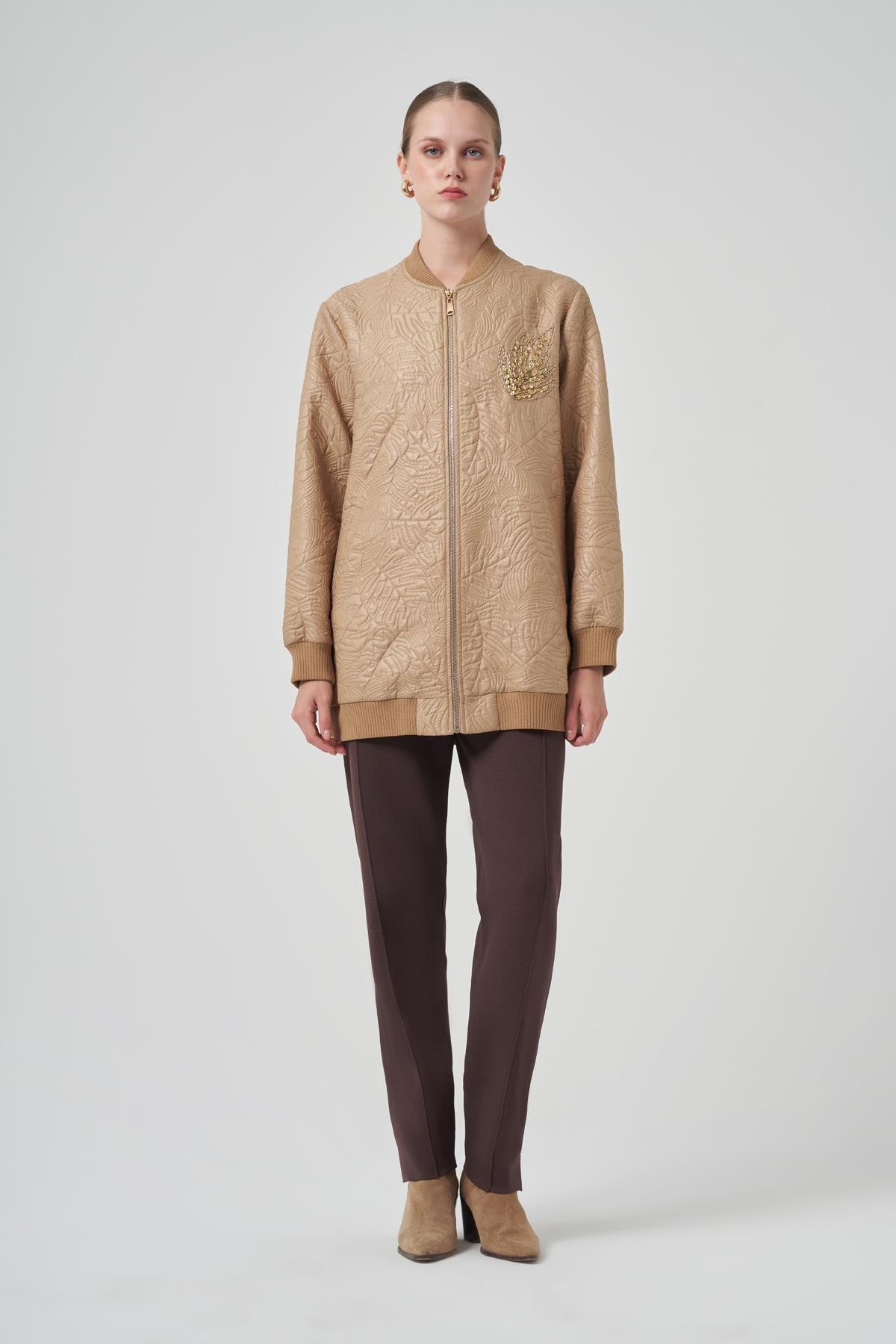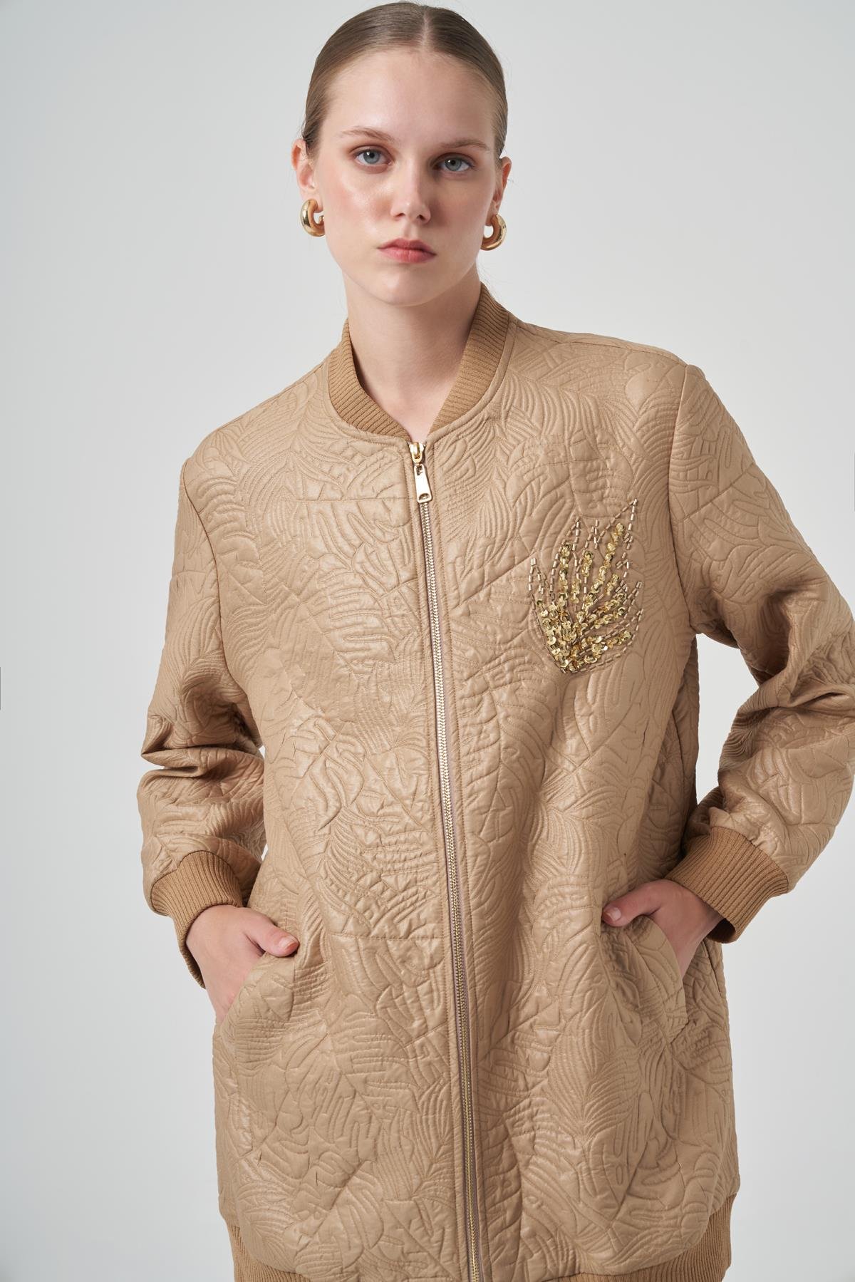 Nuss 6013 Yaka Boncuk İşlemeli Kap - Camel (378267904)