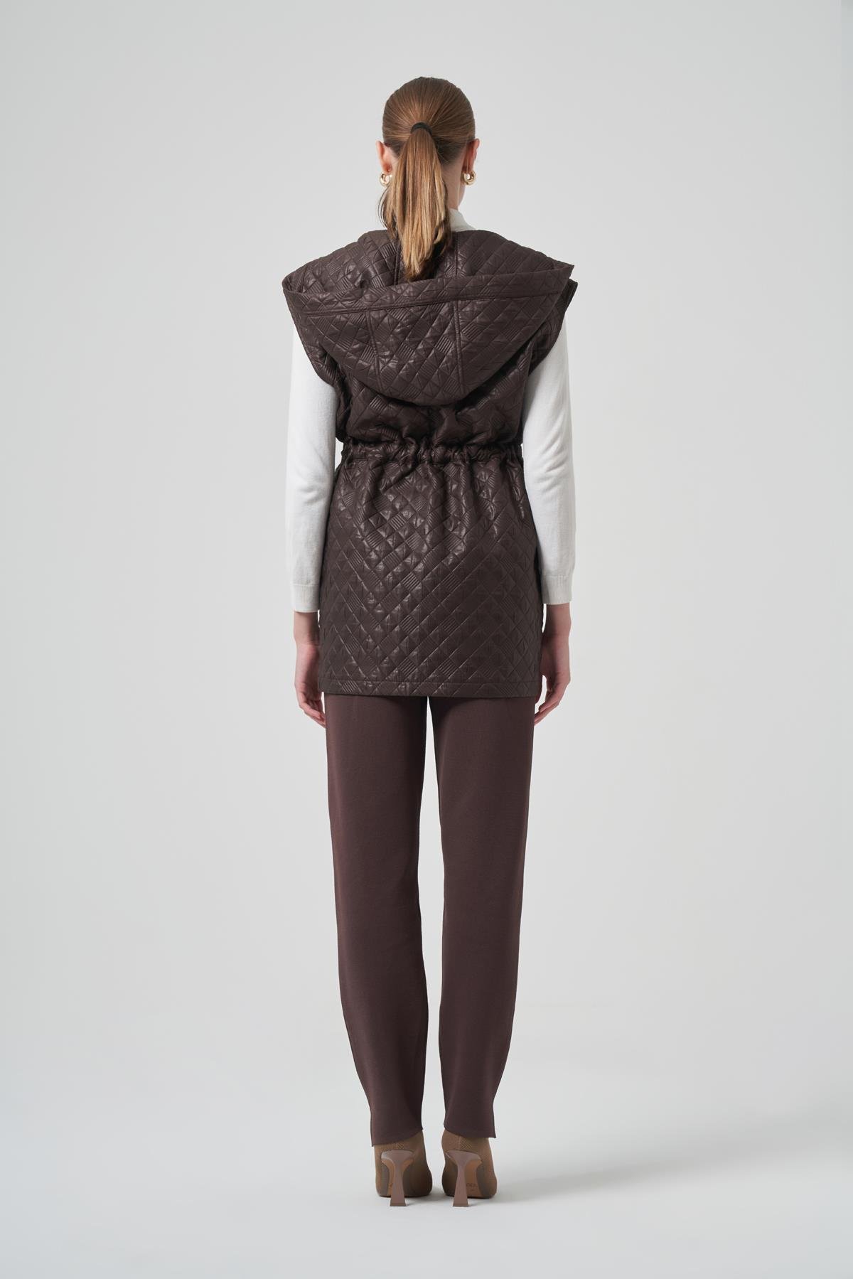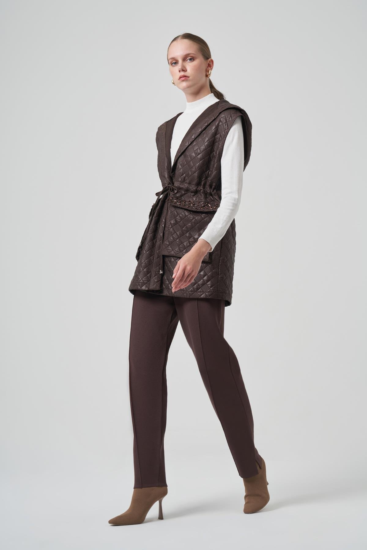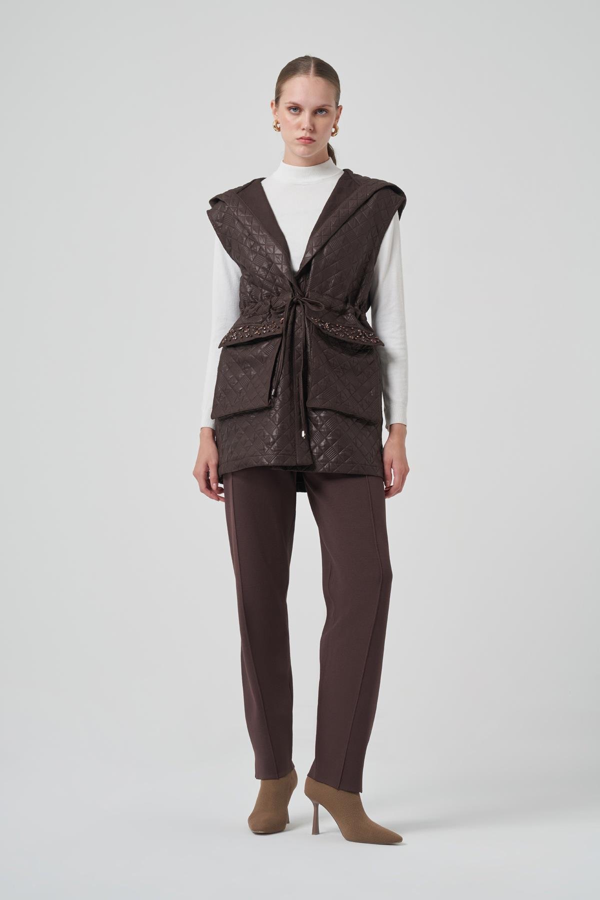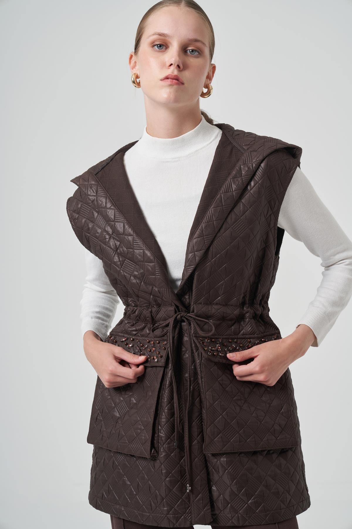 Nuss 6022 Cep Kapakları Taş İşlemeli Yelek - Kahve