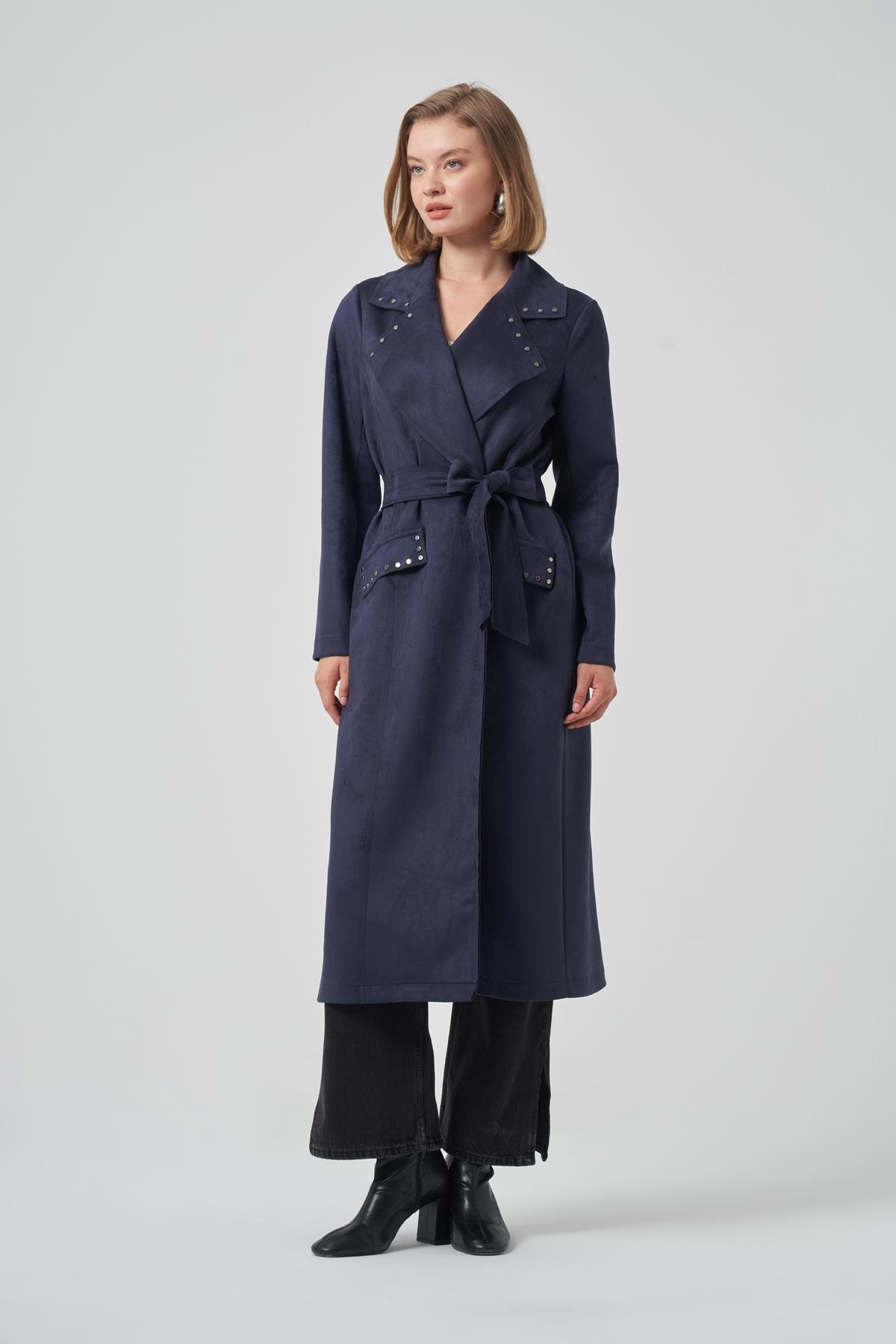 Nuss 6029 Yaka Zımba Detay Süet Kap - İndigo (378267909)