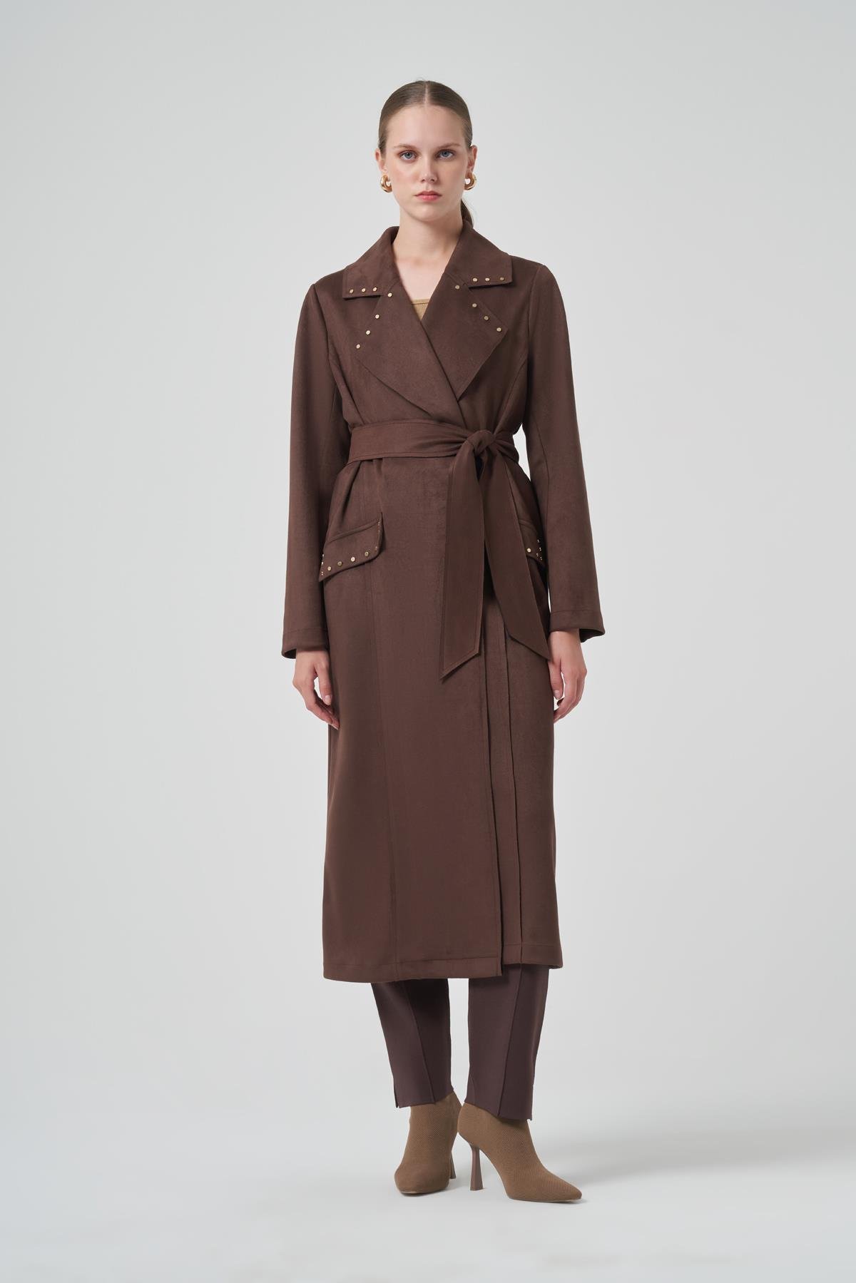 Nuss 6029 Yaka Zımba Detay Süet Kap - Kahve (378267909)