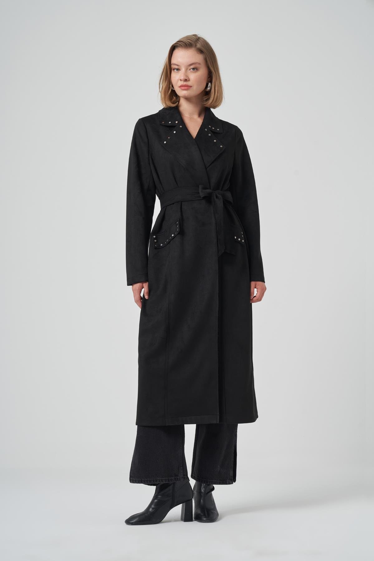 Nuss 6029 Yaka Zımba Detay Süet Kap - Siyah (378267909)