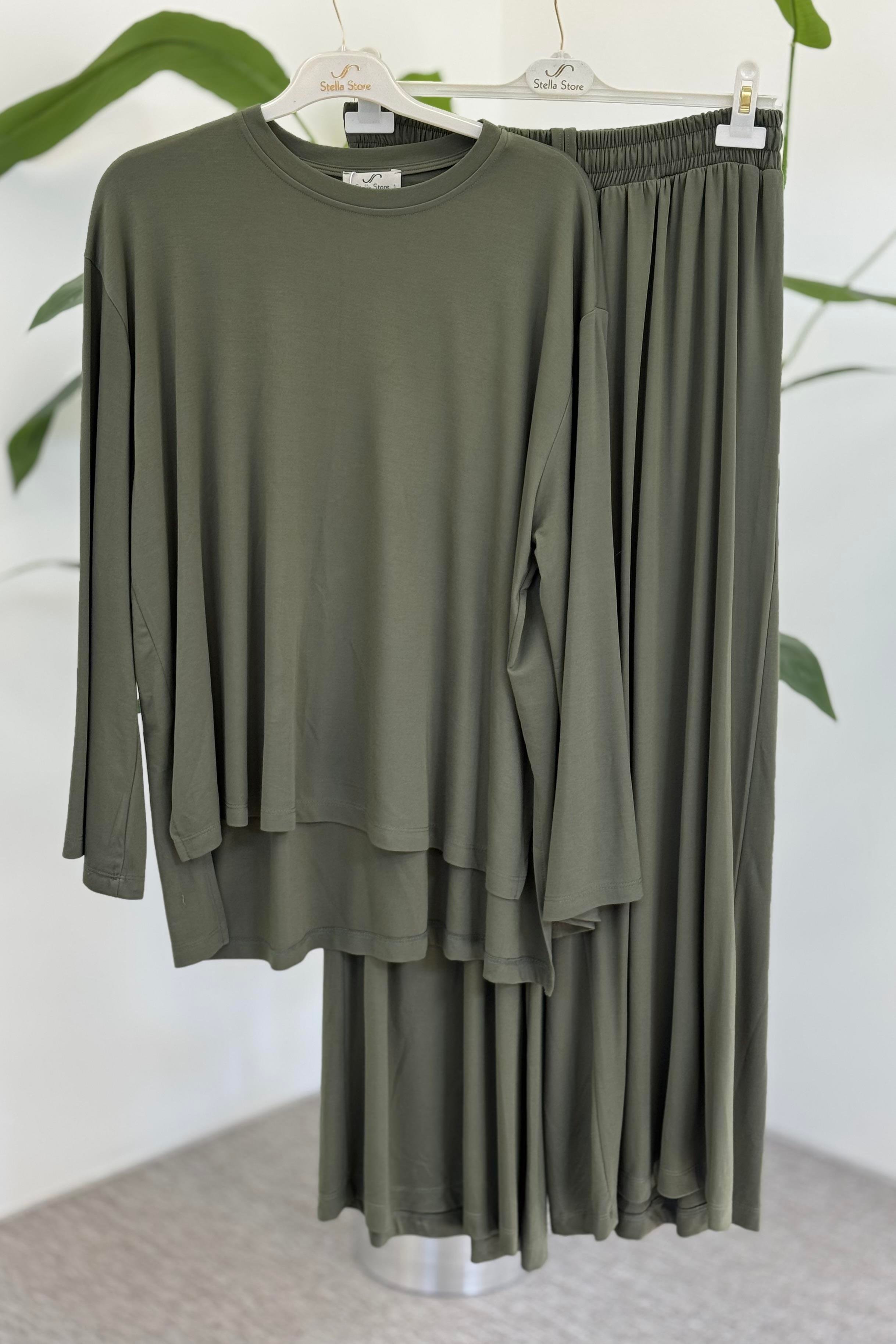 Ön Kısa Arka Uzun Modal Pantolonlu Takım 1365 - Haki