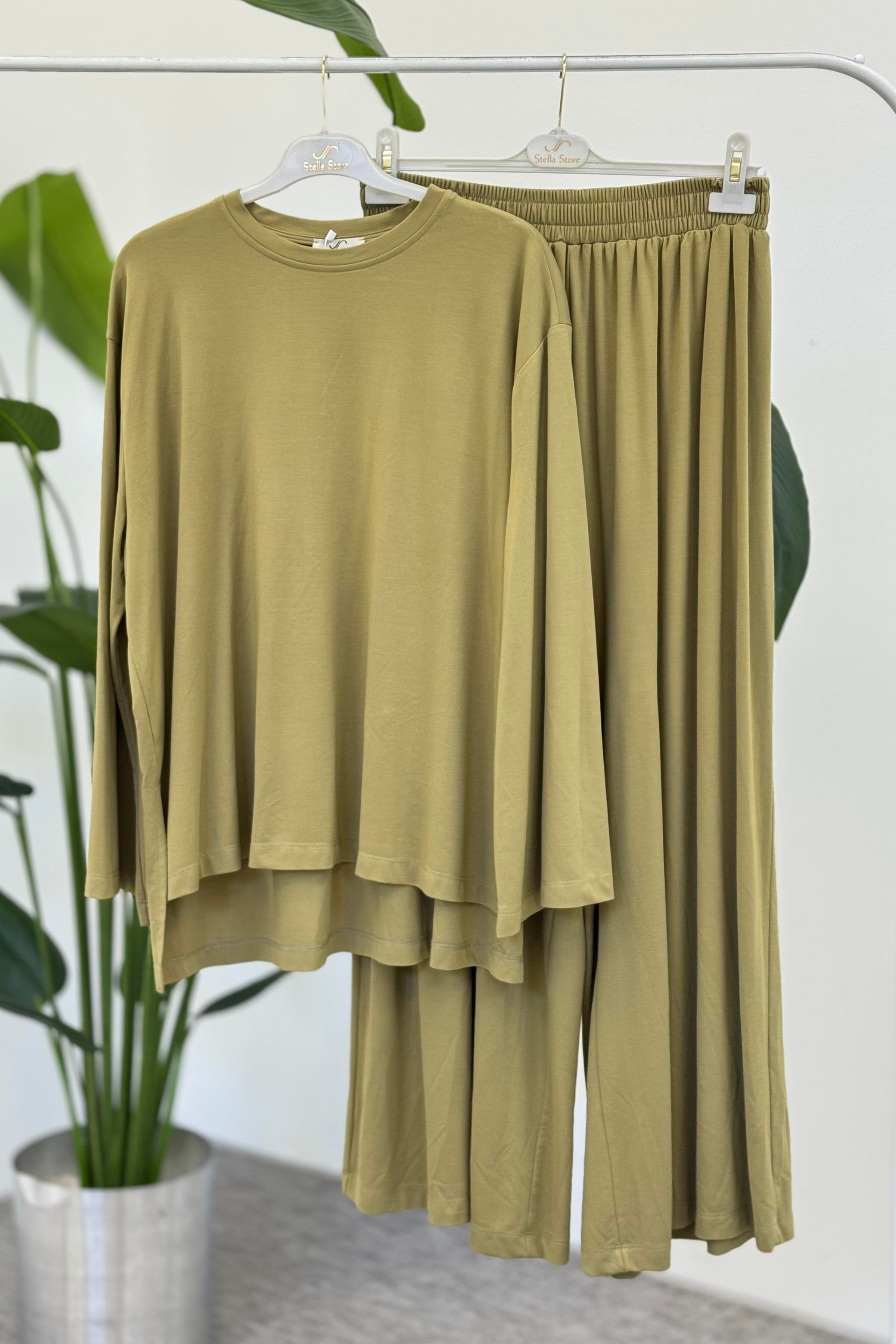 Ön Kısa Arka Uzun Modal Pantolonlu Takım 1365 - Olive (350307839)