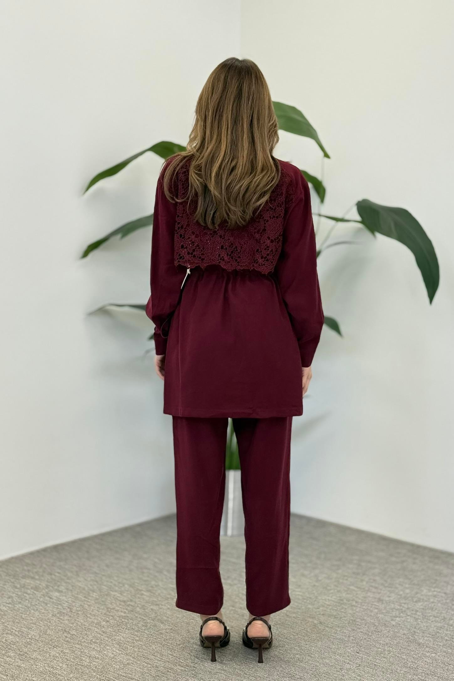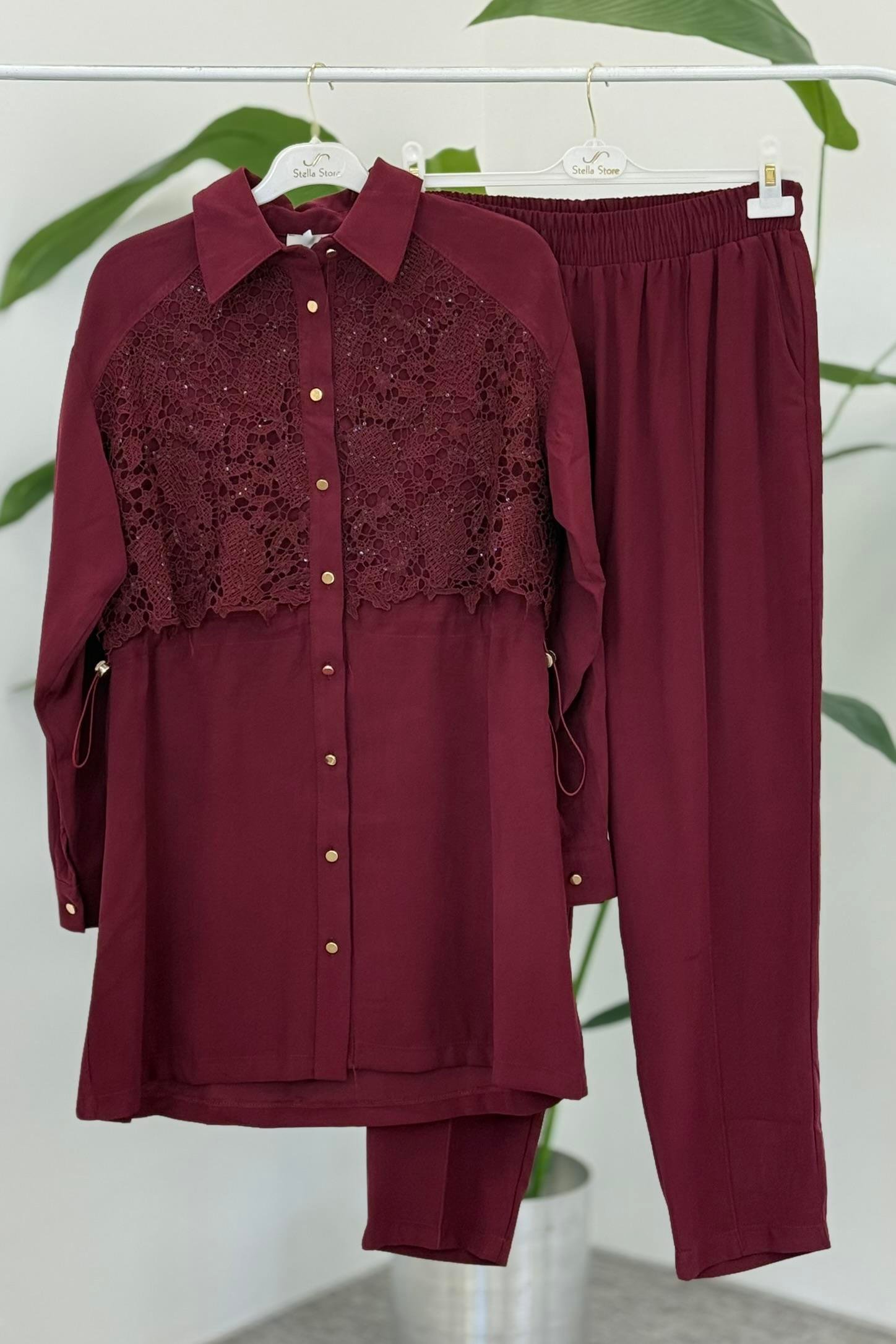 Payet ve Dantel İşlemeli Pantolonlu Takım 1394 - Bordo