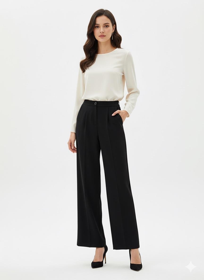 Pileli Palazzo Kumaş Pantolon 18266 - Siyah (361251901)