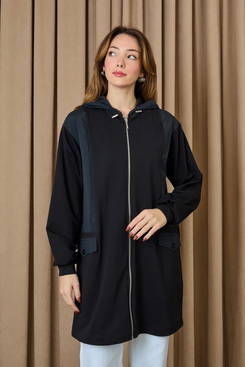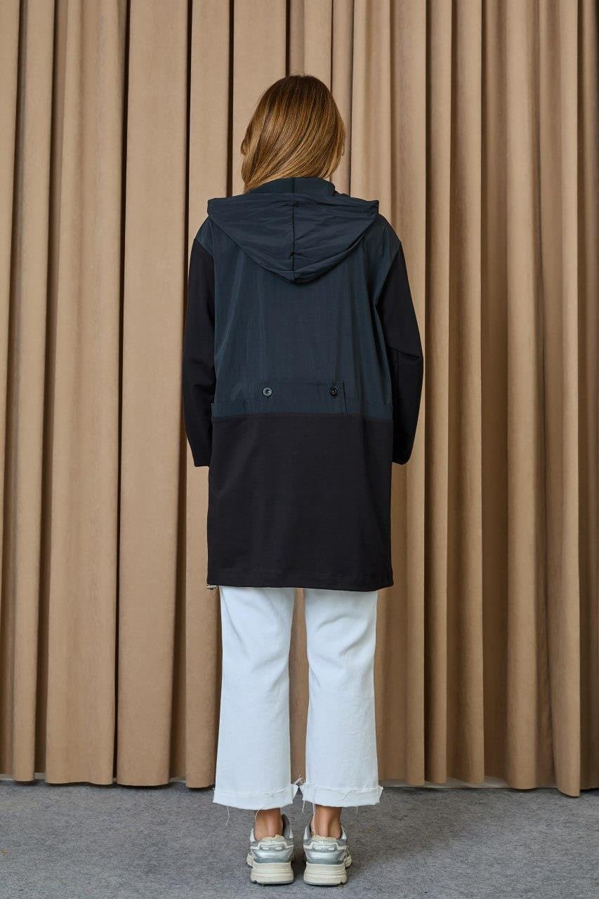 Sahte Cep Kapak Detay Fermuarlı Kap 10733 - Browni Sahte Cep Kapak Detay Fermuarlı Kap 10733 - F.Navy