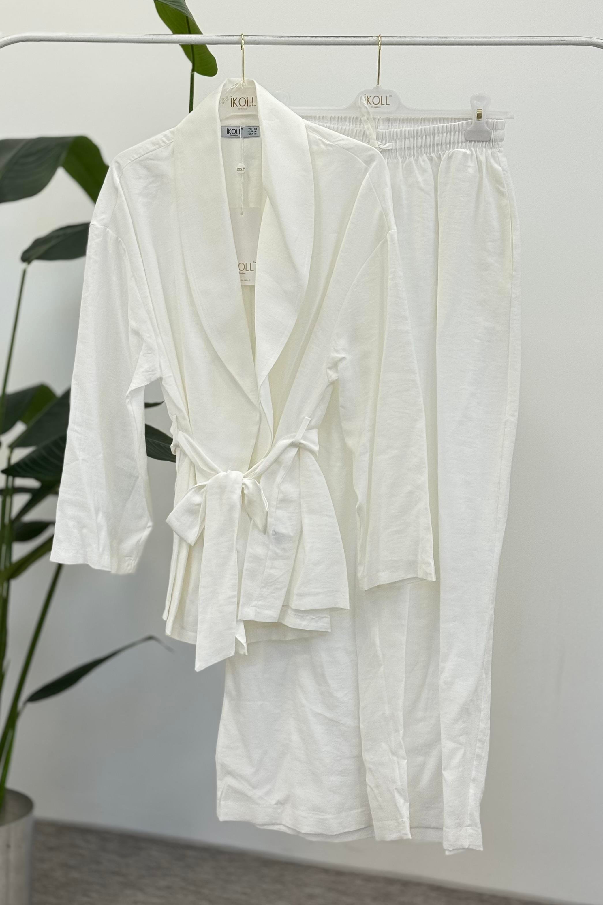 Şal Yaka Ceketli Pantolonlu Takım 0035403 - Ekru (350132827)