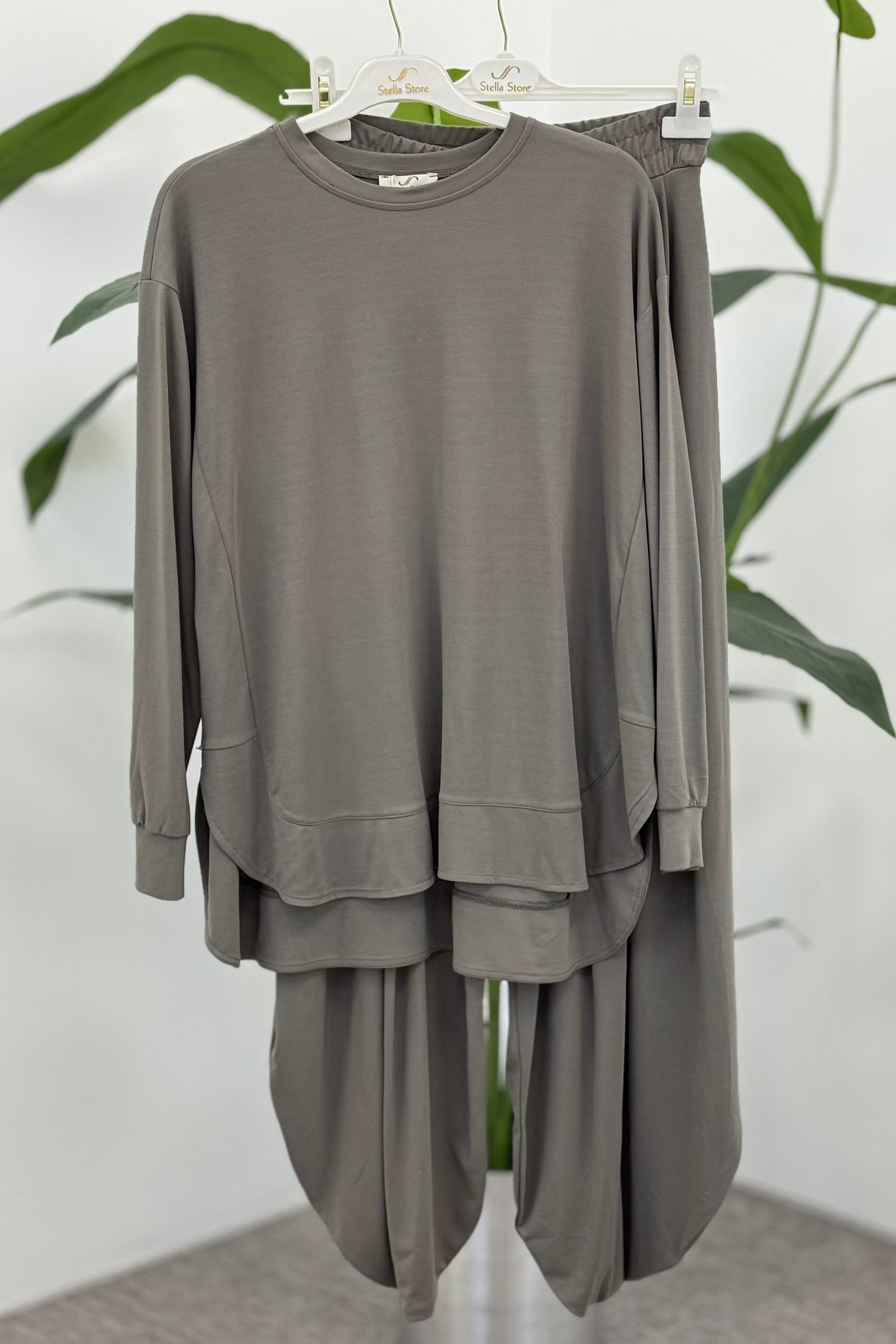 Şalvar Pantolon Detaylı Rahat Takım 1373 - Haki (350307843)
