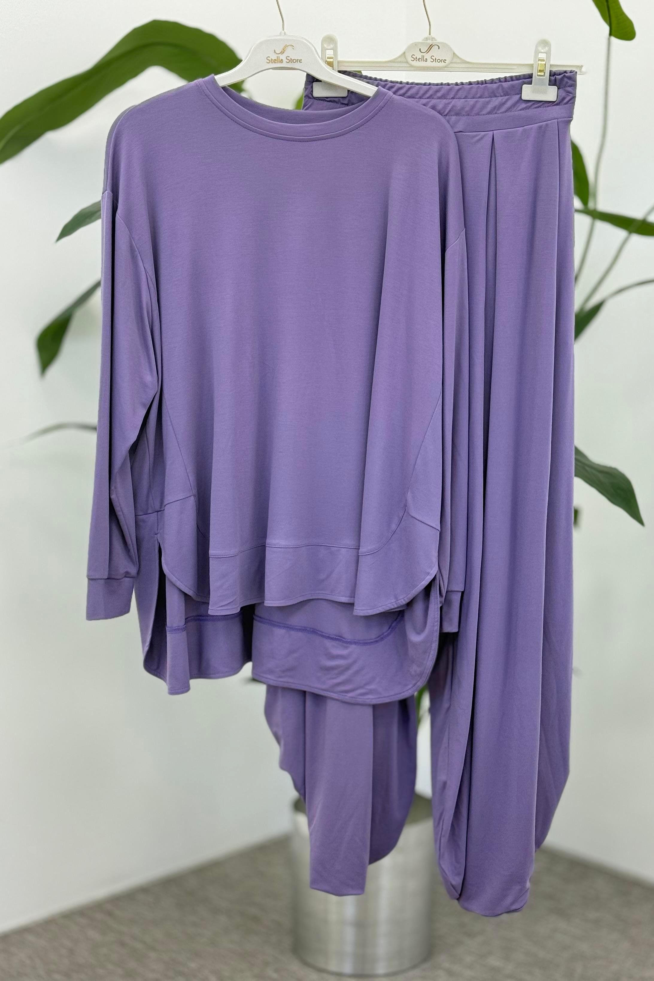 Şalvar Pantolon Detaylı Rahat Takım 1373 - Lila (350307843)