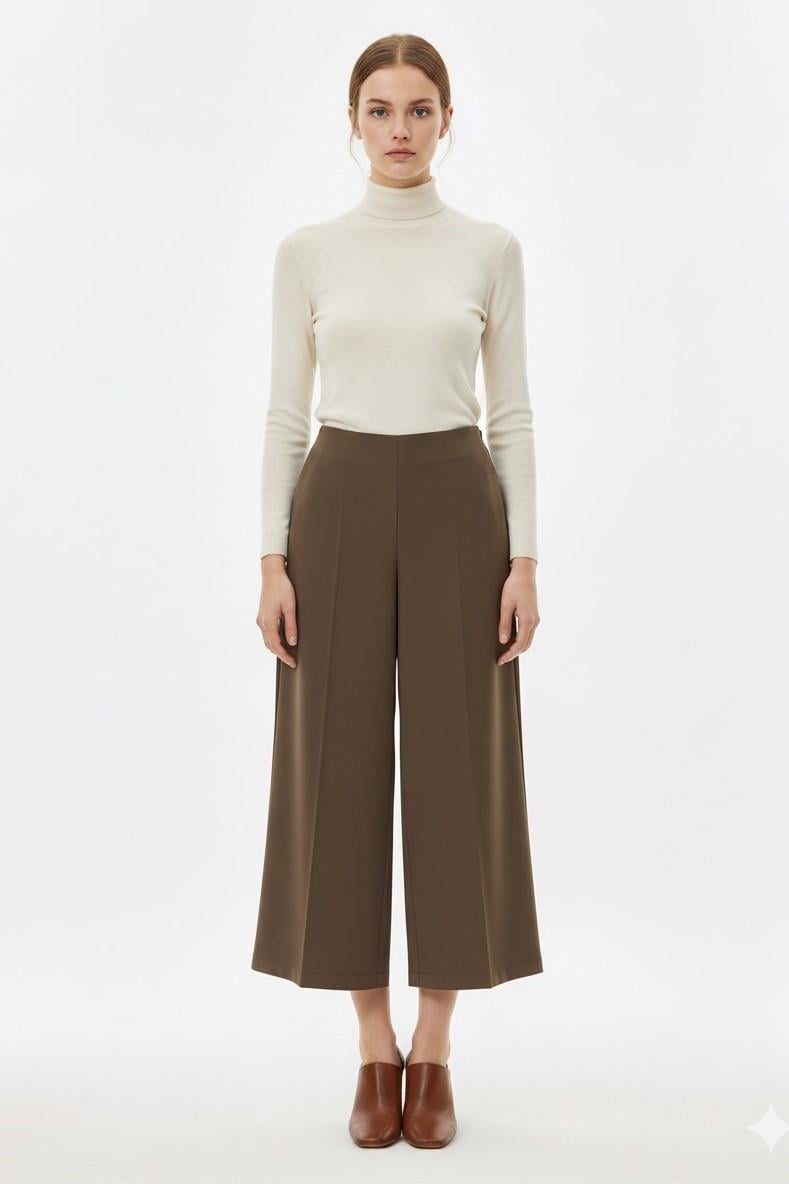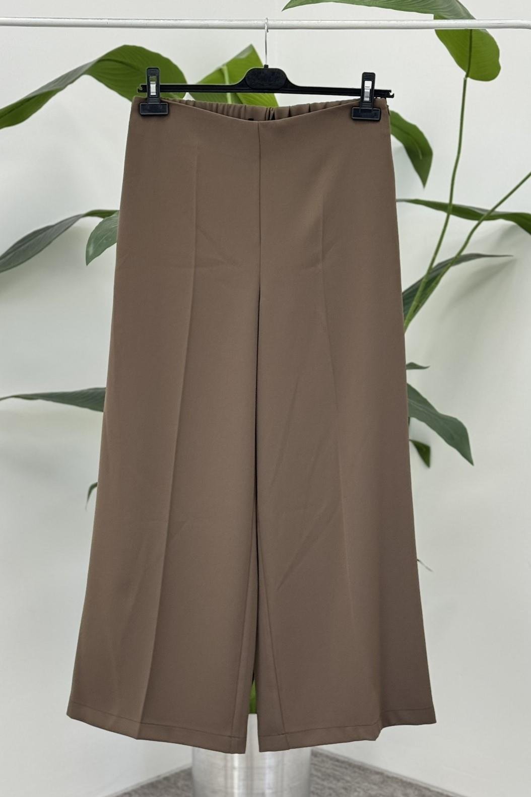 Sentez 5386 Arkası Lastikli Kısa Geniş Paça Pantolon - Vizon