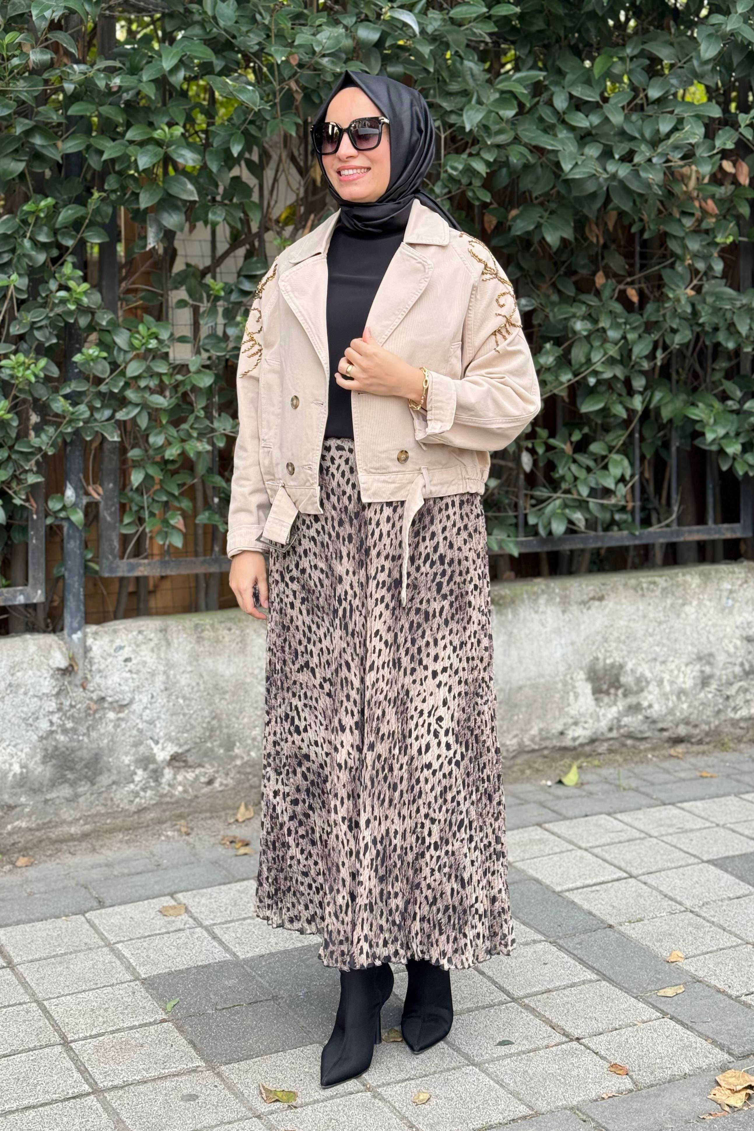 Sentez 5432 Şifon Kırıştırma Etek - Camel
