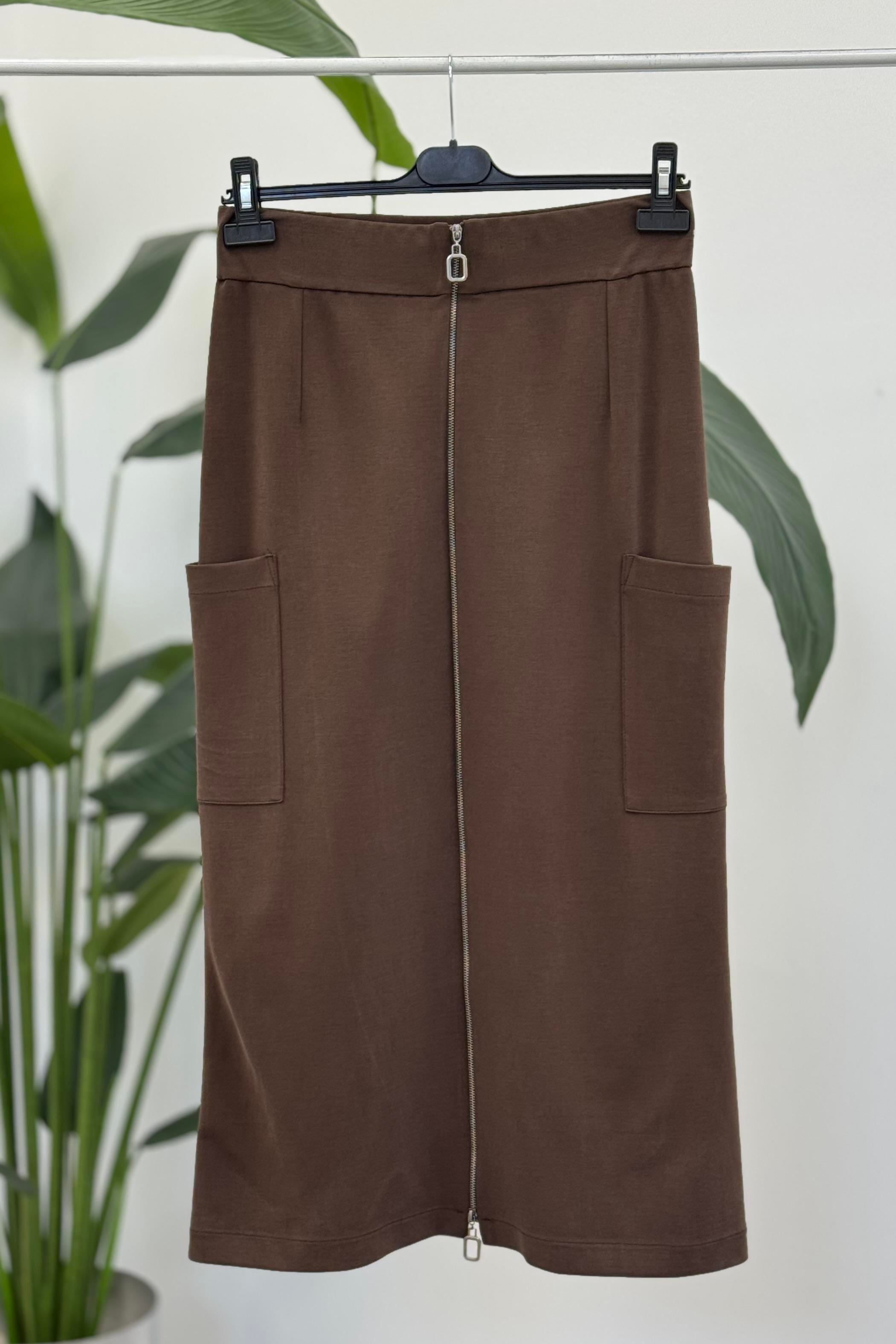 Sentez 5469 Cep Detaylı Fermuarlı Etek - Kahve