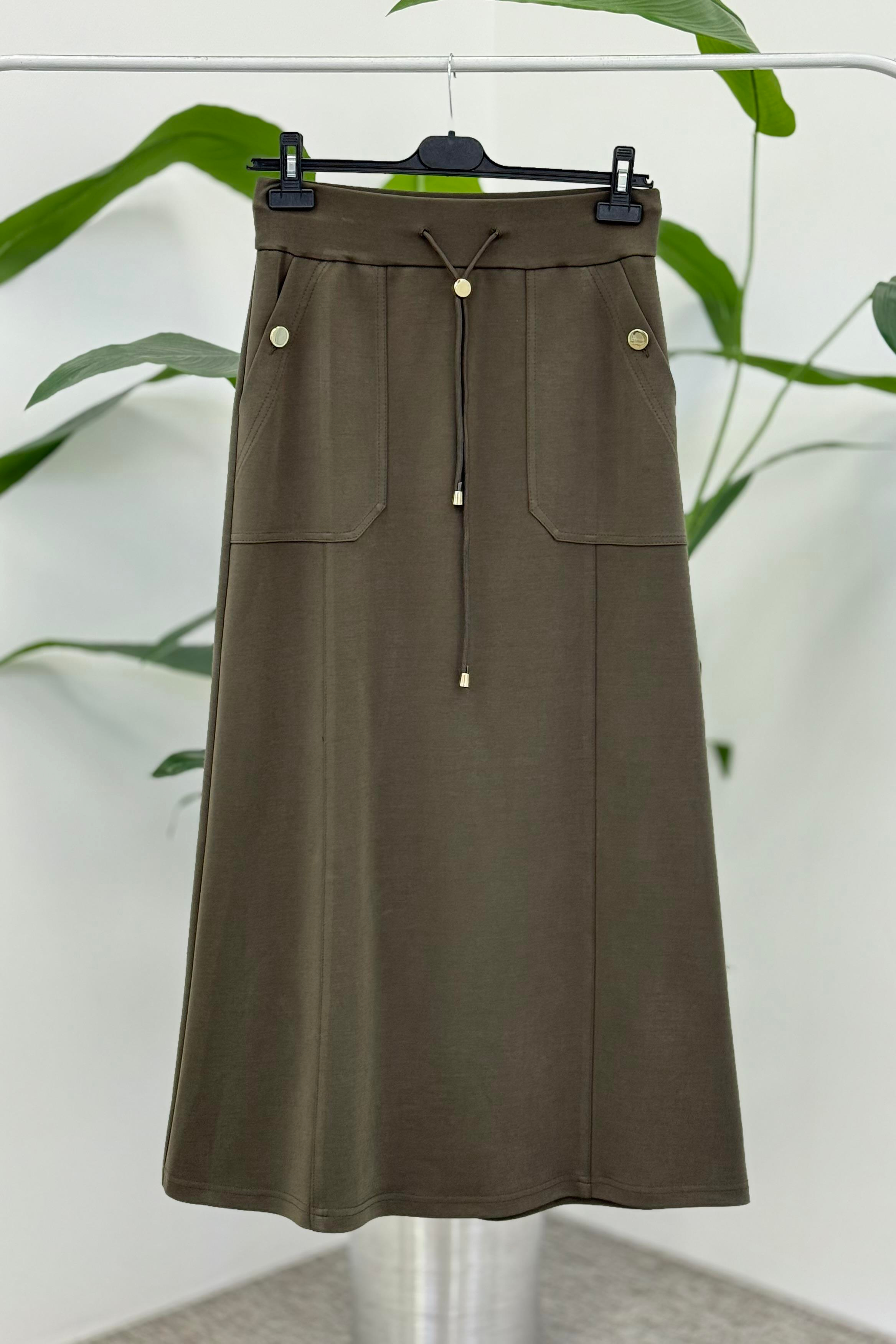 Sentez 5472 Elenna Cep Düğmeli Çan Etek - Haki