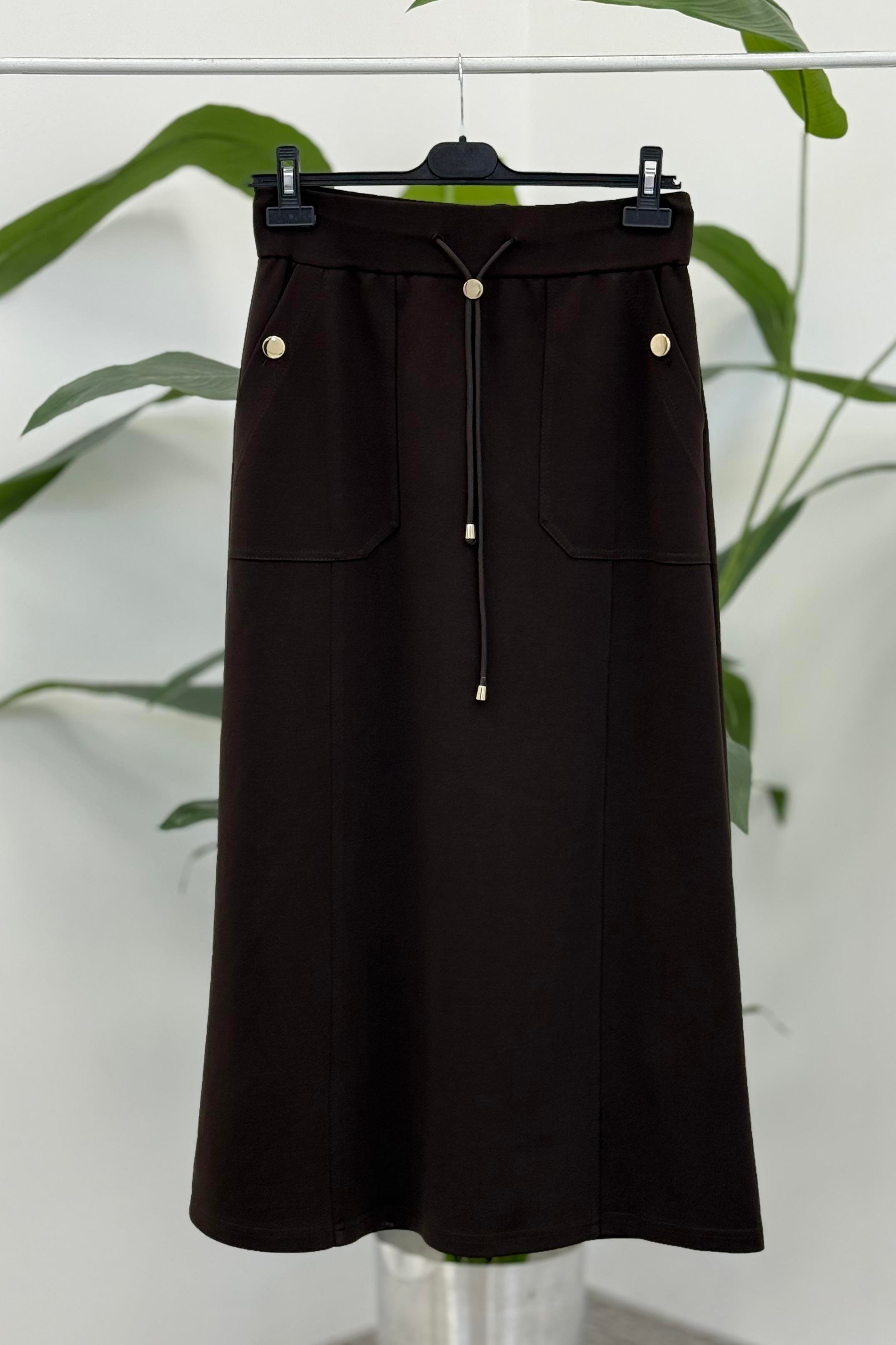 Sentez 5472 Elenna Cep Düğmeli Çan Etek - Kahve