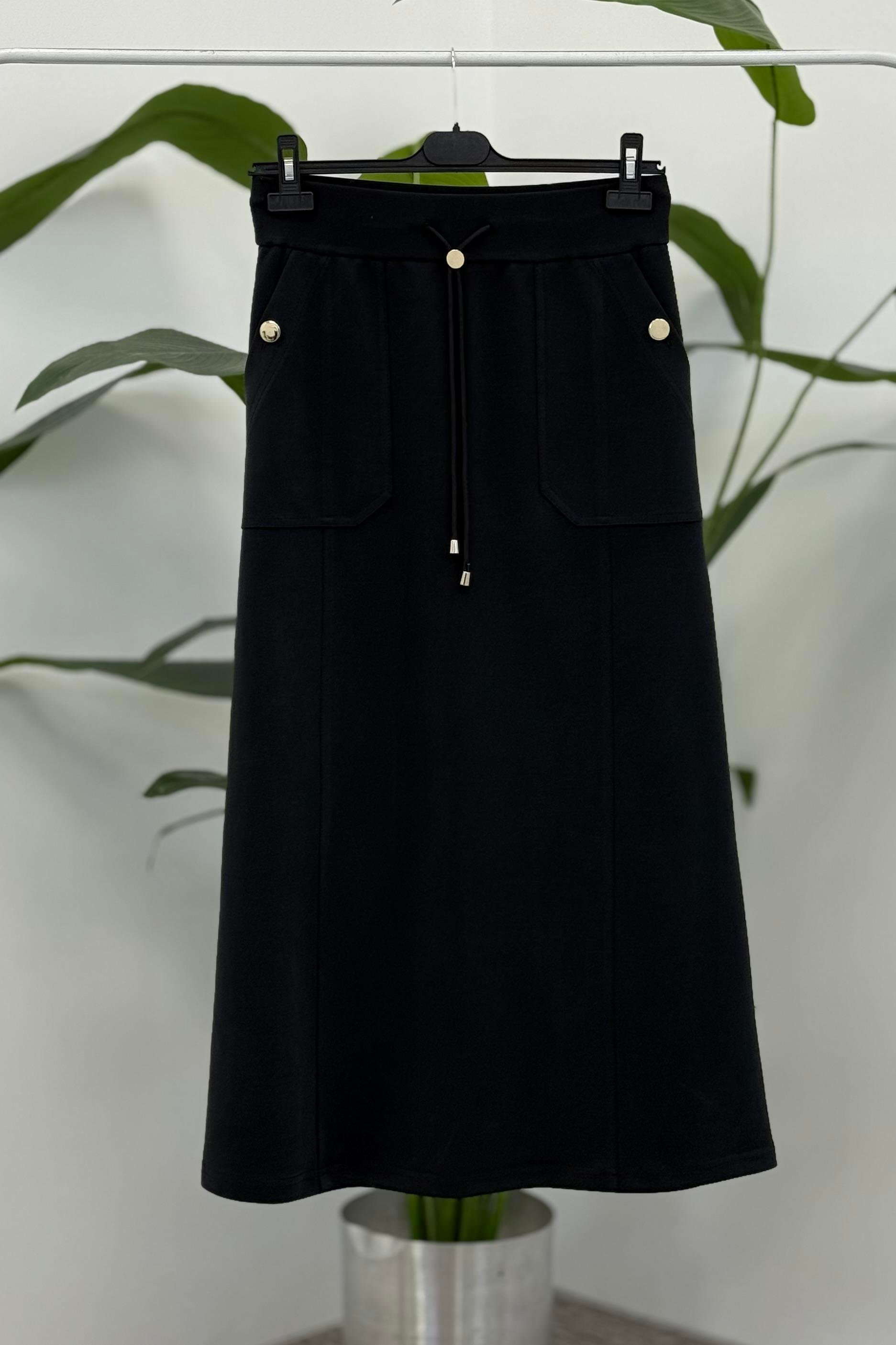 Sentez 5472 Elenna Cep Düğmeli Çan Etek - Siyah