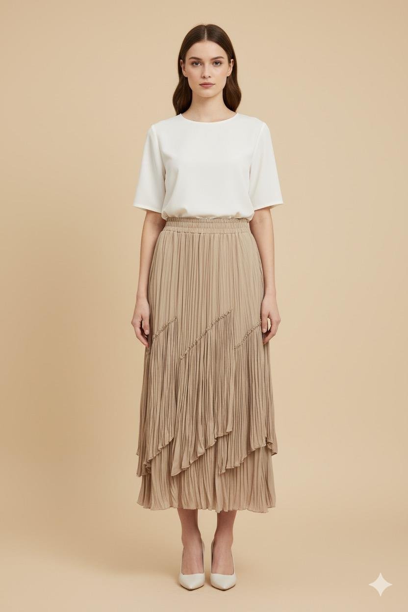 Sentez 5475 Viola Parçalı Kırıştırma Etek - Bej (360328906)
