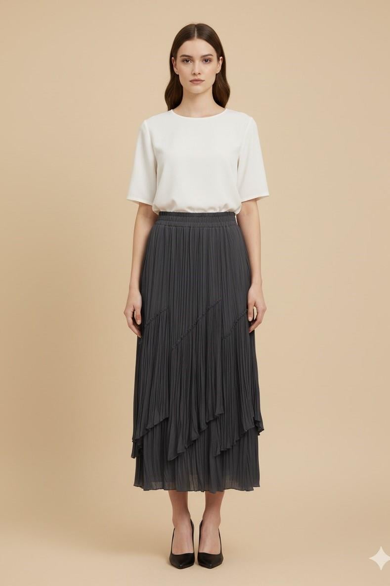 Sentez 5475 Viola Parçalı Kırıştırma Etek - Gri (360328906)
