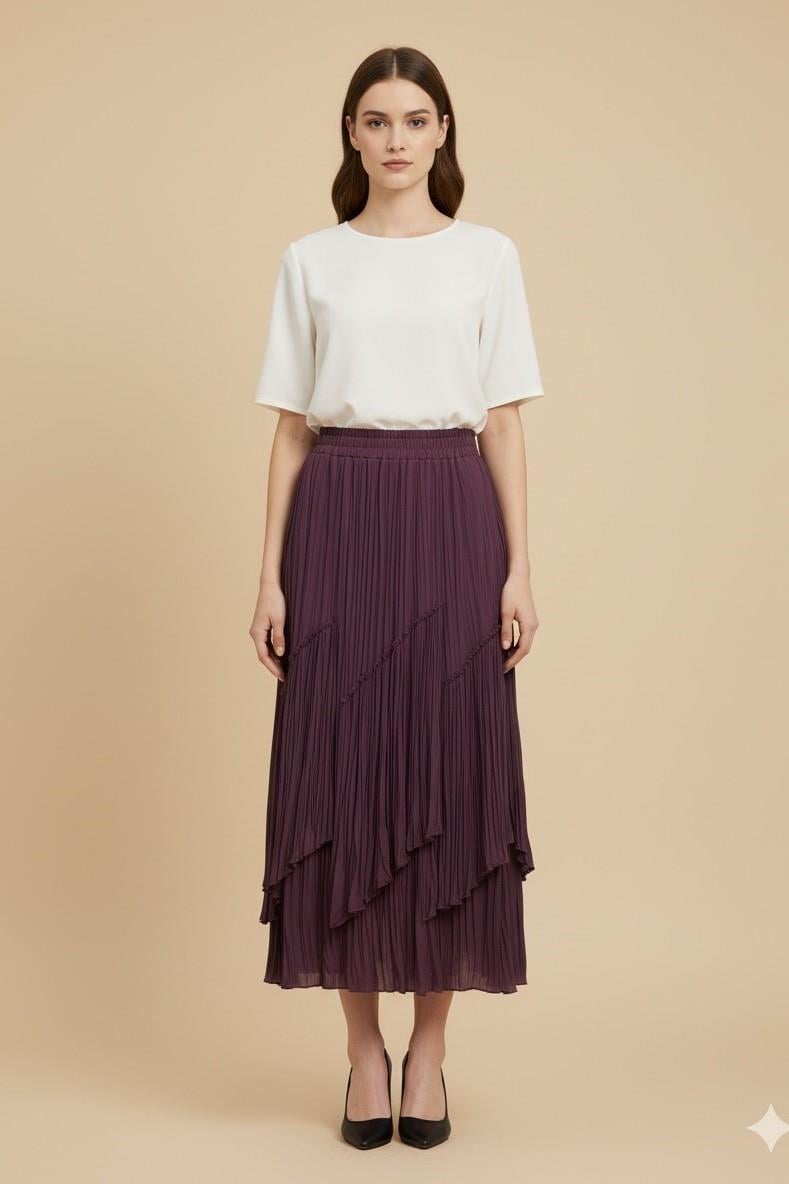 Sentez 5475 Viola Parçalı Kırıştırma Etek - Mürdüm (360328906)