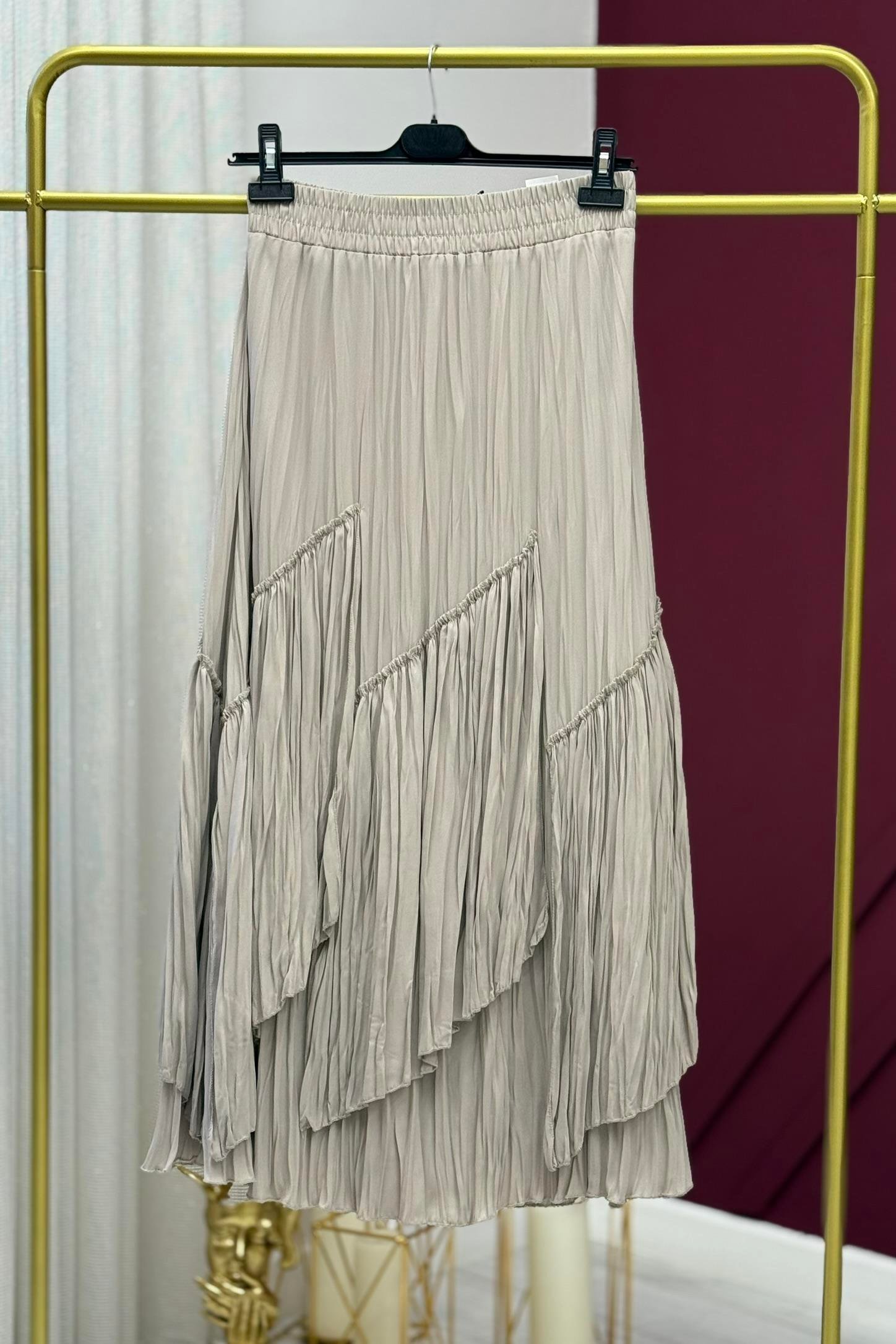Sentez 5475 Viola Parçalı Kırıştırma Etek - Taş (360328906)