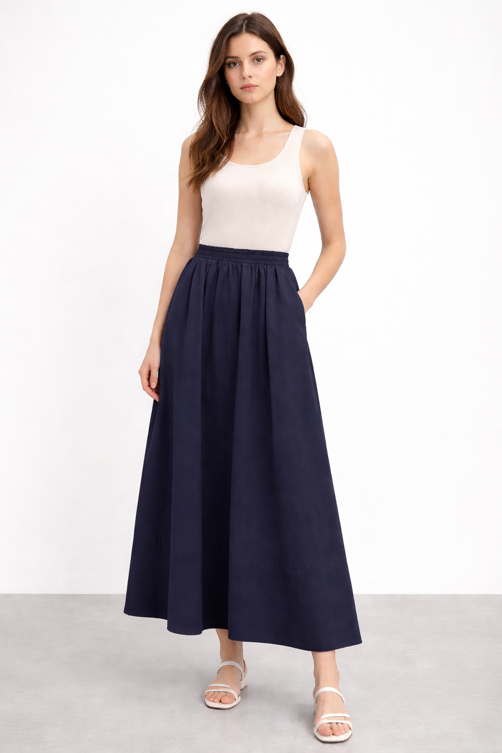 Sentez 5479 Ely Beli Lastikli Etek - Lacivert