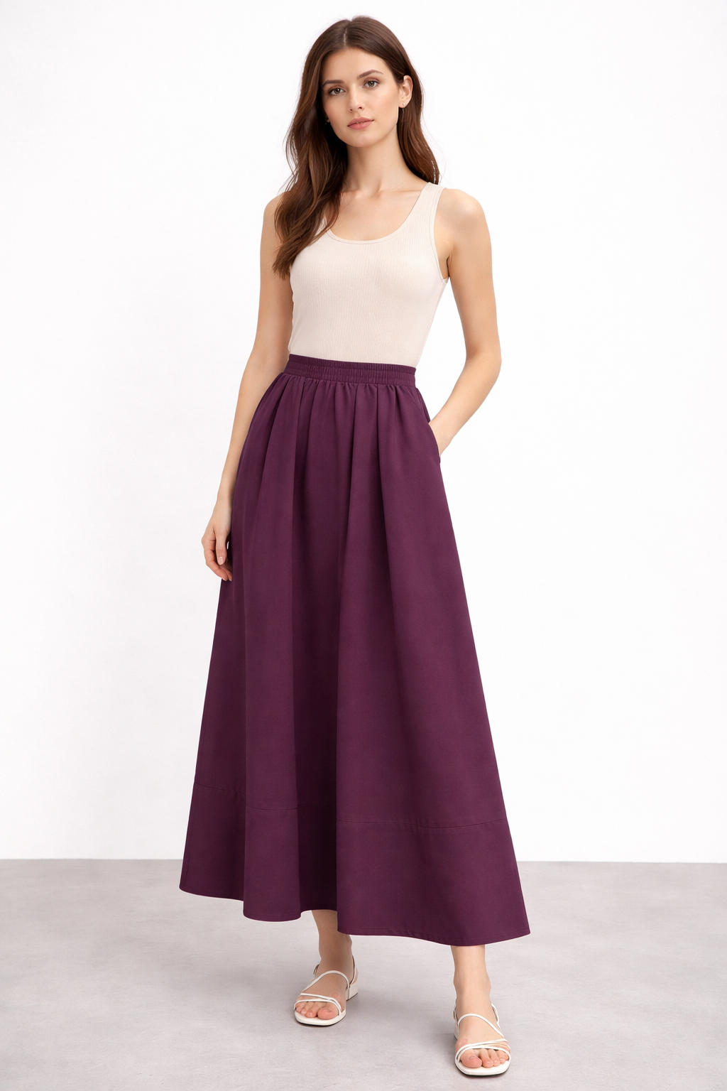 Sentez 5479 Ely Beli Lastikli Etek - Mürdüm