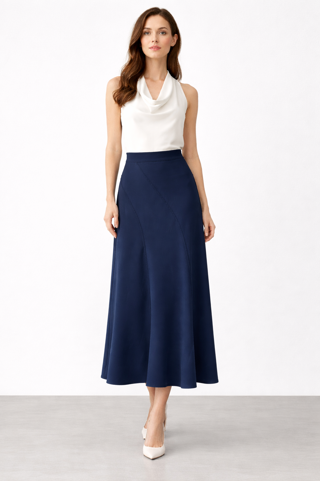 Sentez 5480 Lilium Parçalı Volanlı Etek - Lacivert