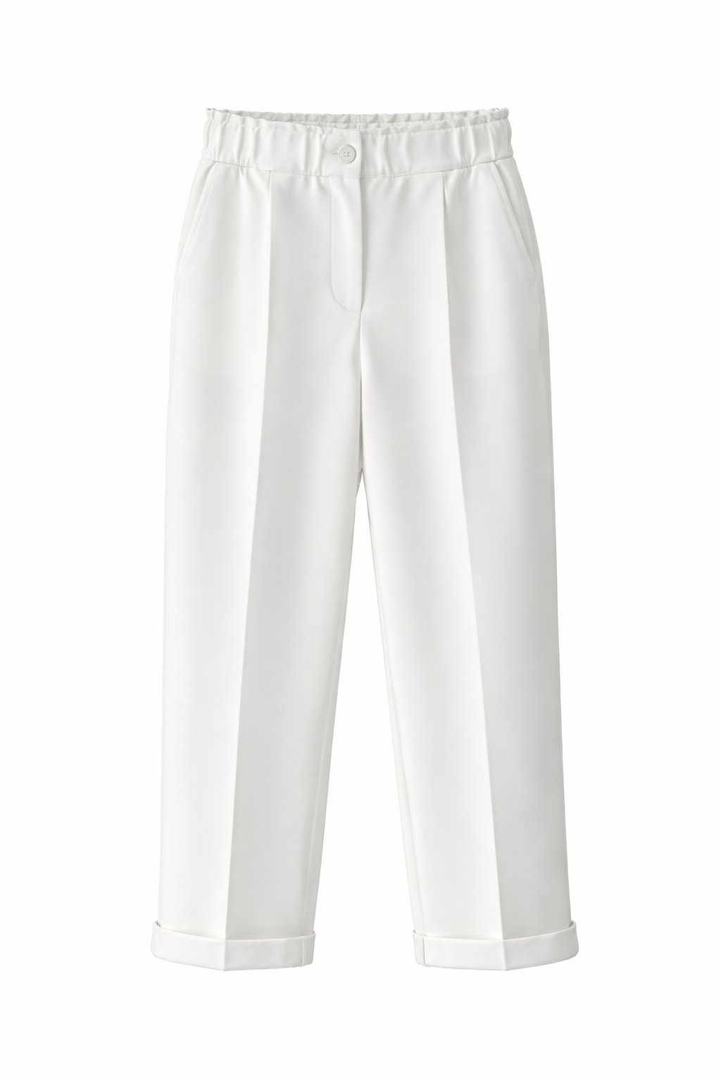 Sentez 5514 Beli Lastikli İnce Duble Paça Pantolon - Beyaz