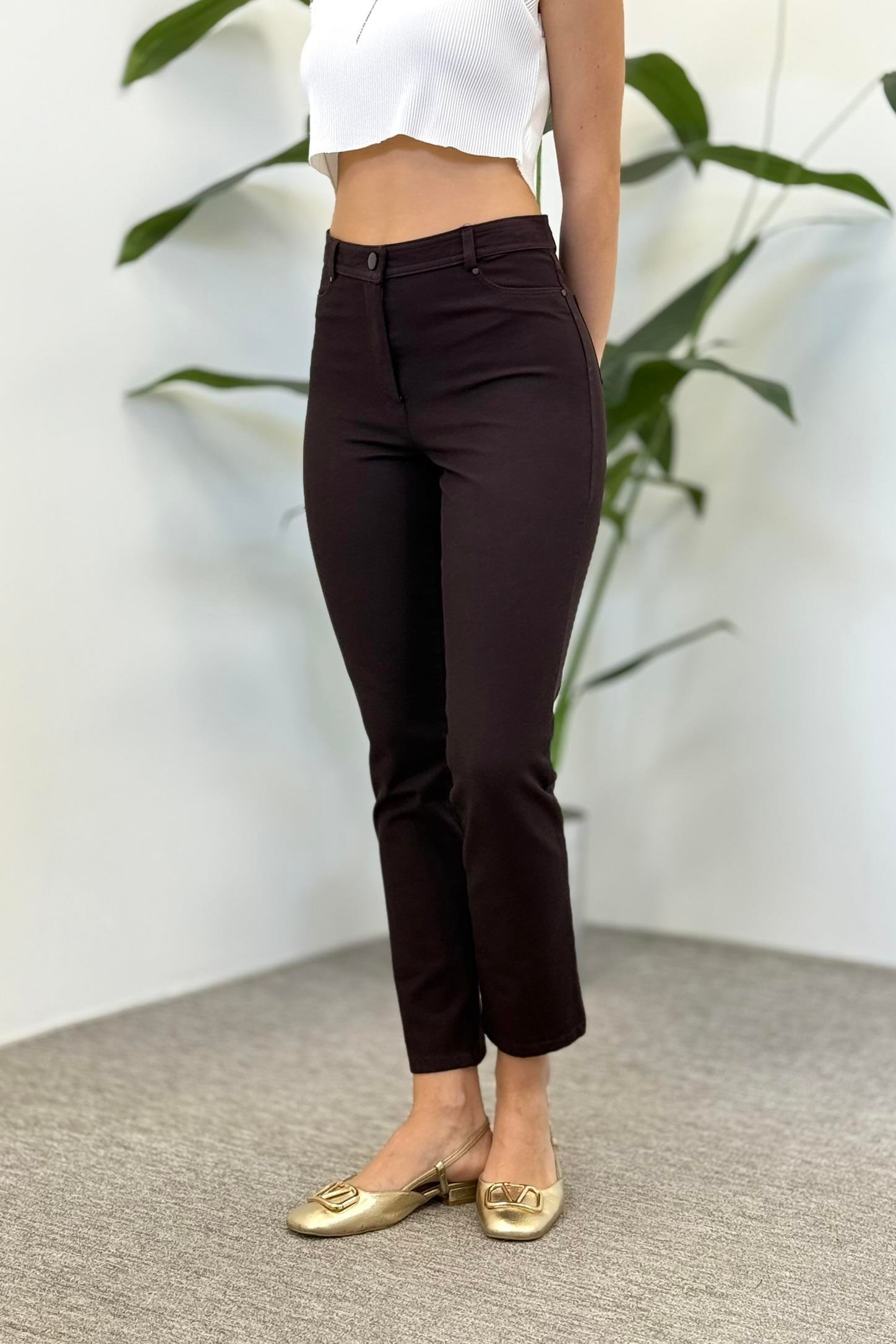 Sentez 5532 Kanvas Dar Paça Pantolon - Kahve